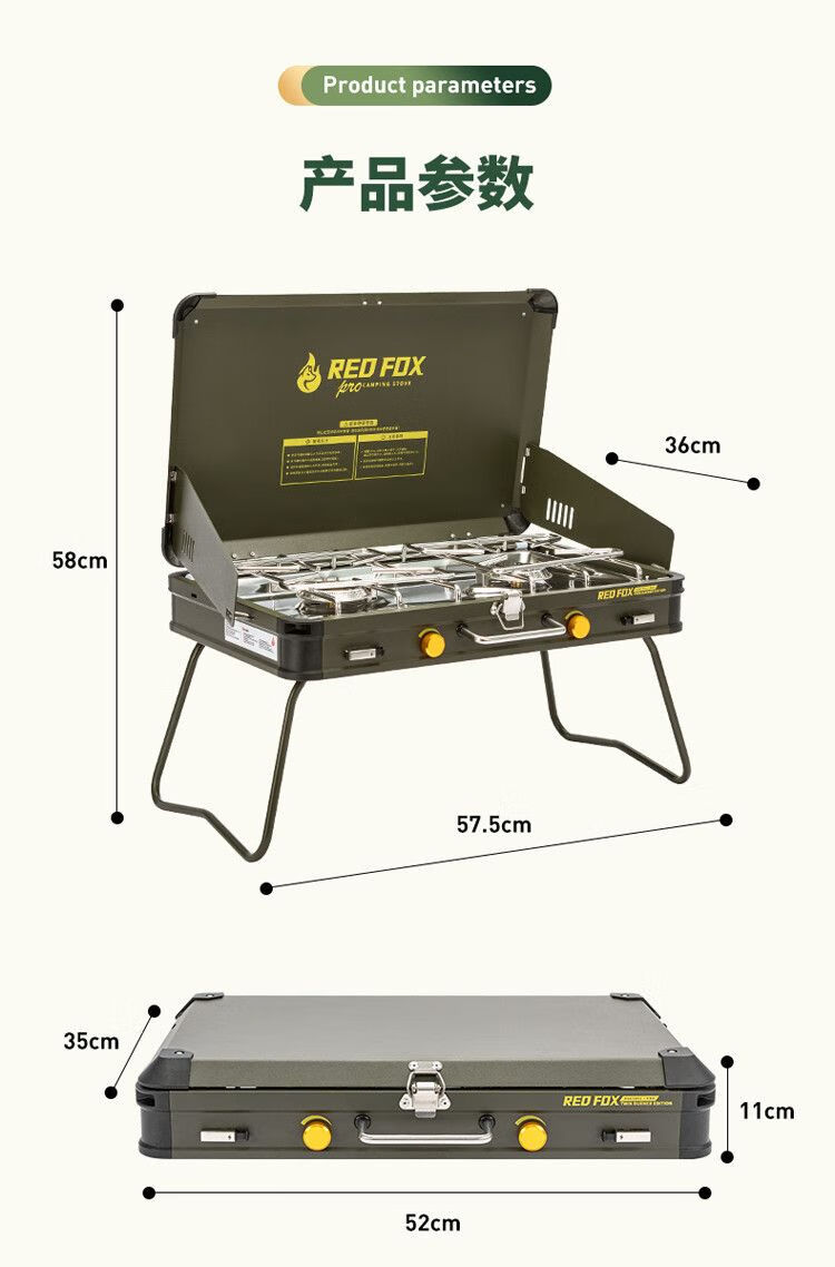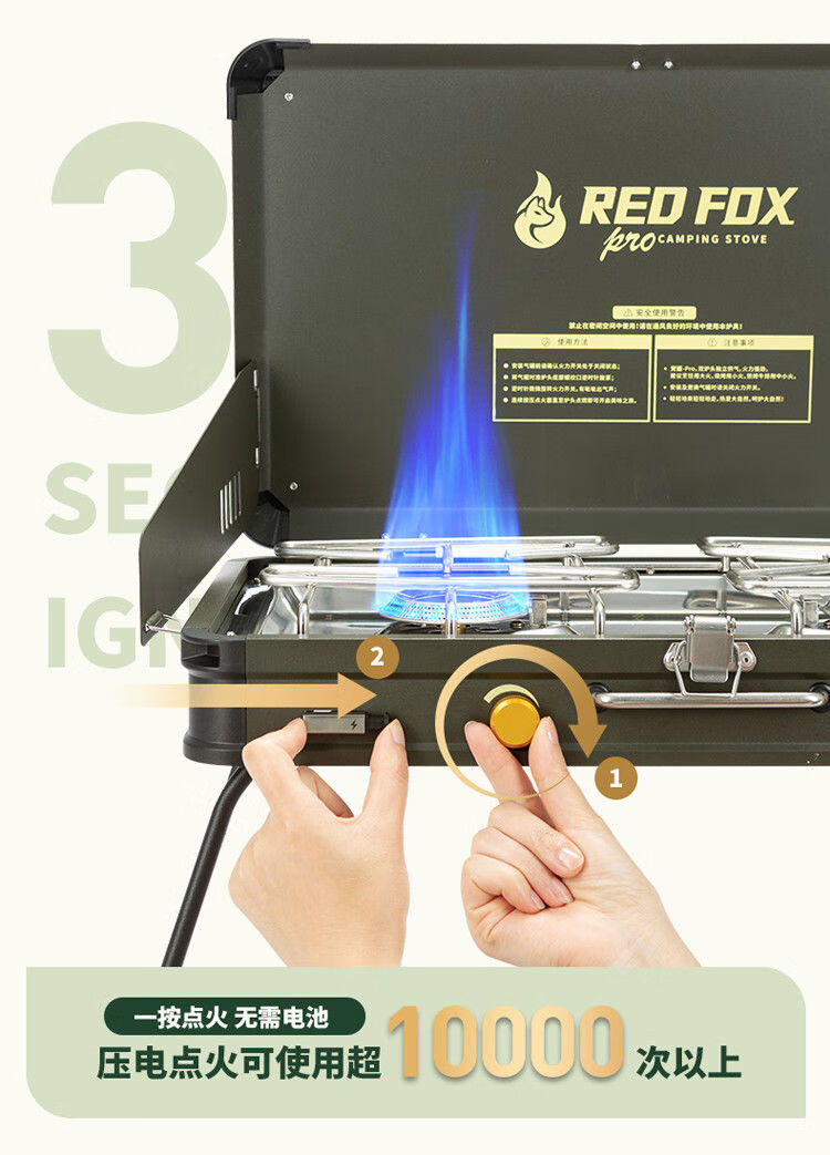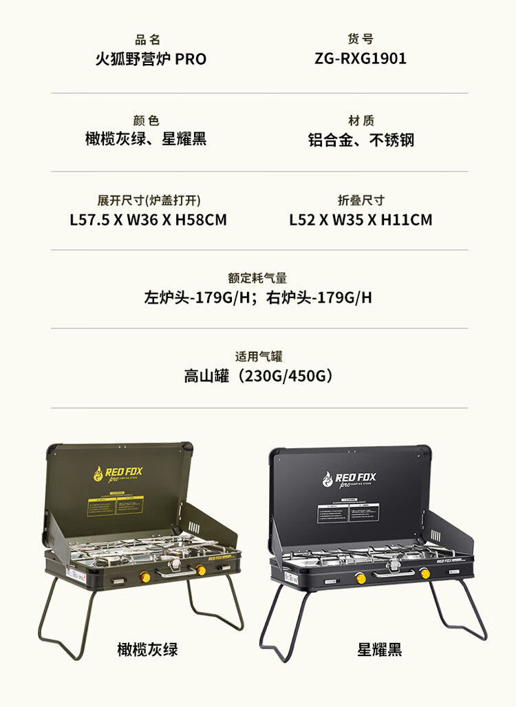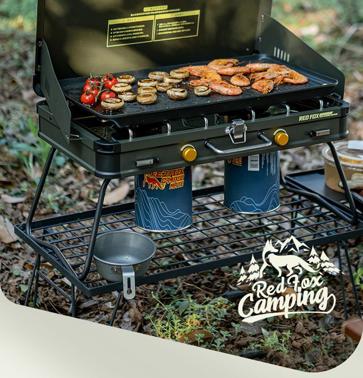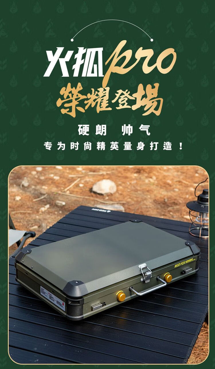 火狐RedFOX户外野炊炉具家用露营烧烤装备卡式炉烧烤炉燃气 火狐pro双头野营炉【星耀黑】罓极速發貨