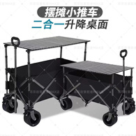 Aoran 露营推车可折叠户外手推野餐车营地拖车拉杆小拉车桌板野营车 黑色【双刹飞机轮+桌板】+椅子*2