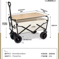 北岳露营推车可折叠户外手推野餐车营地拖车拉杆小拉车桌板烧烤野营车 【简易】越野轮米白+木纹桌板