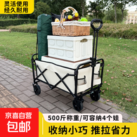 蕉京营地车四向聚拢车聚拢型露营车小推车野营摆摊户外拉货手拉车折叠 黑ProMax 聚拢推杆