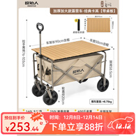 原始人露营推车营地拖车户外折叠旅行手推野餐小推车野营遛娃快递手拉车 250L 桌板套餐:加大款卡其+桌板
