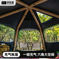 探险者(TAN XIAN ZHE)六角自动充气帐篷户外野营过夜露营装备全套便携式折叠厚防晒 六角充气帐【钛黑涂银款】卡其+全自动充气床