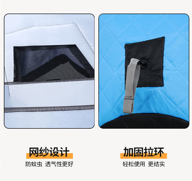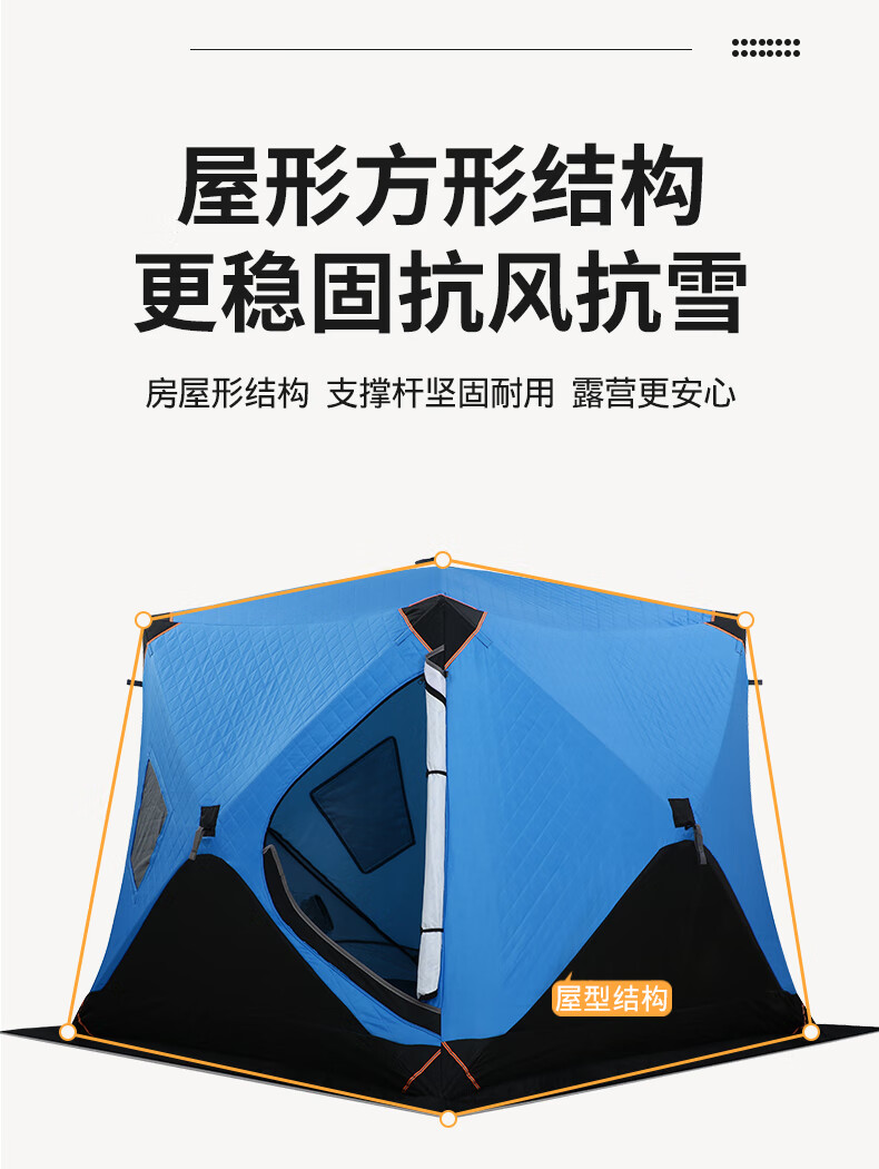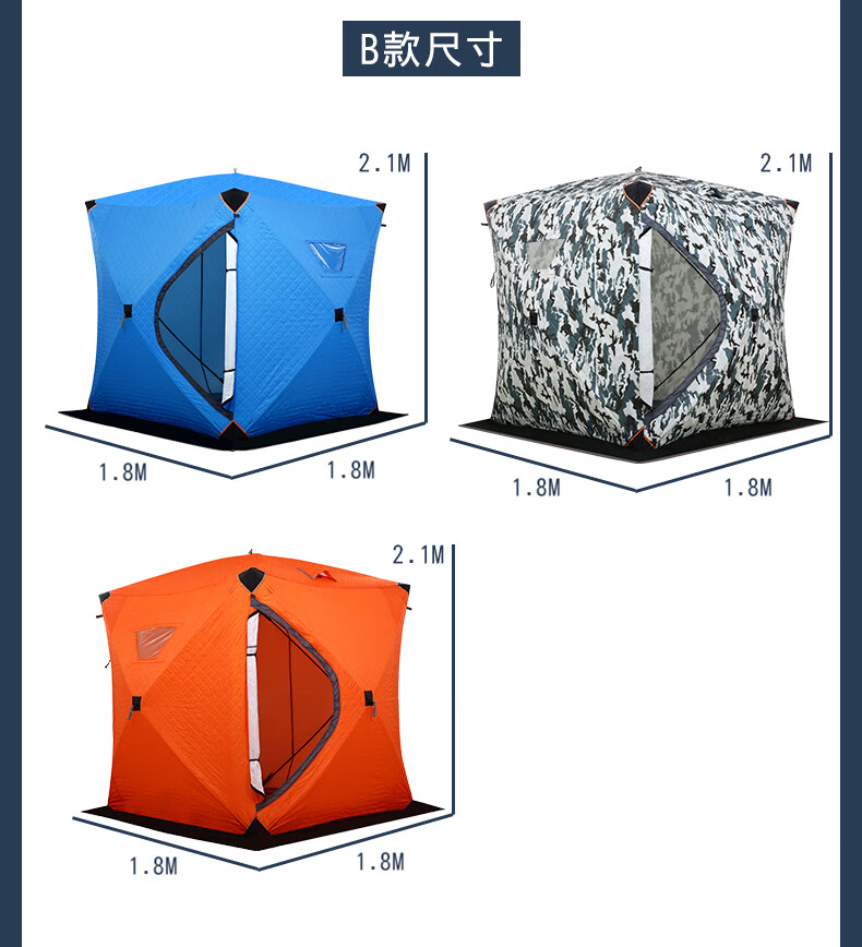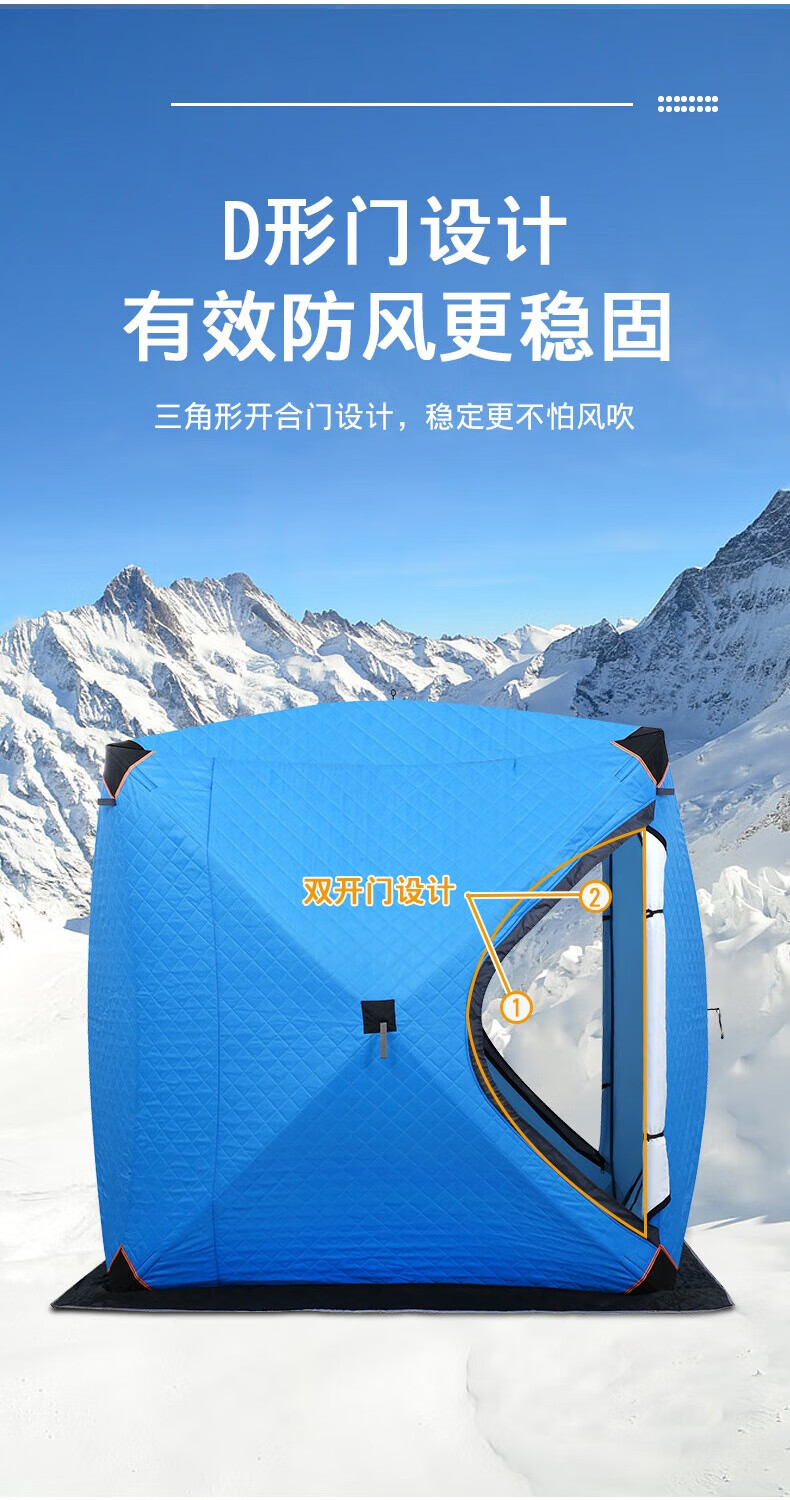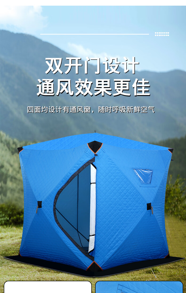 糜岚(MieLanat)加厚保暖户外冬季加棉保温防风防寒冰钓屋装备冬钓棉帐篷 升级款蓝色内尺寸1.8*1.8米+底布