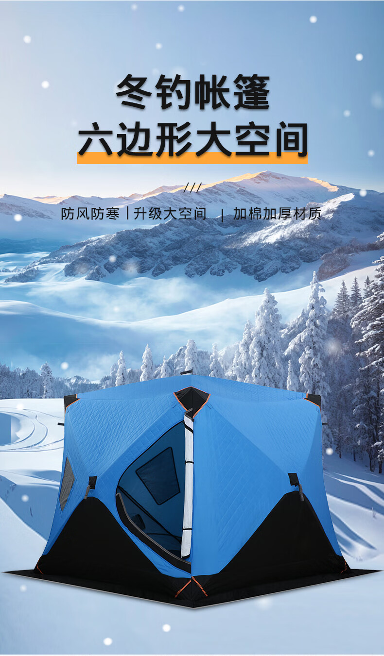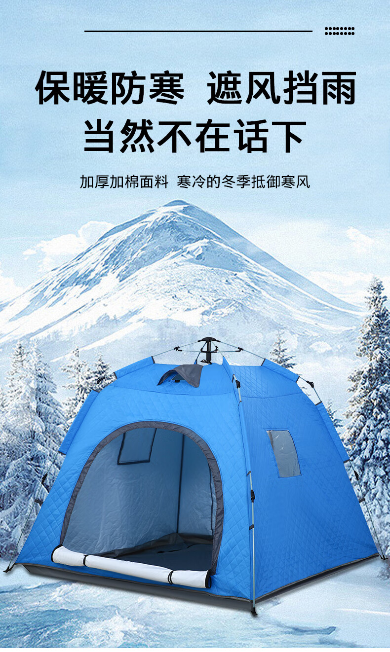 这款帐篷真是户外露营神器,防风保暖效果超棒,冬天钓鱼也不怕冷了。搭建方便,材质厚实,性价比很高,物有所值。用了几次都很满意!