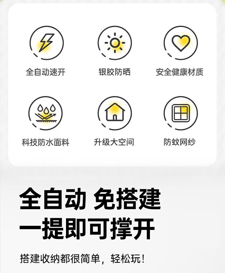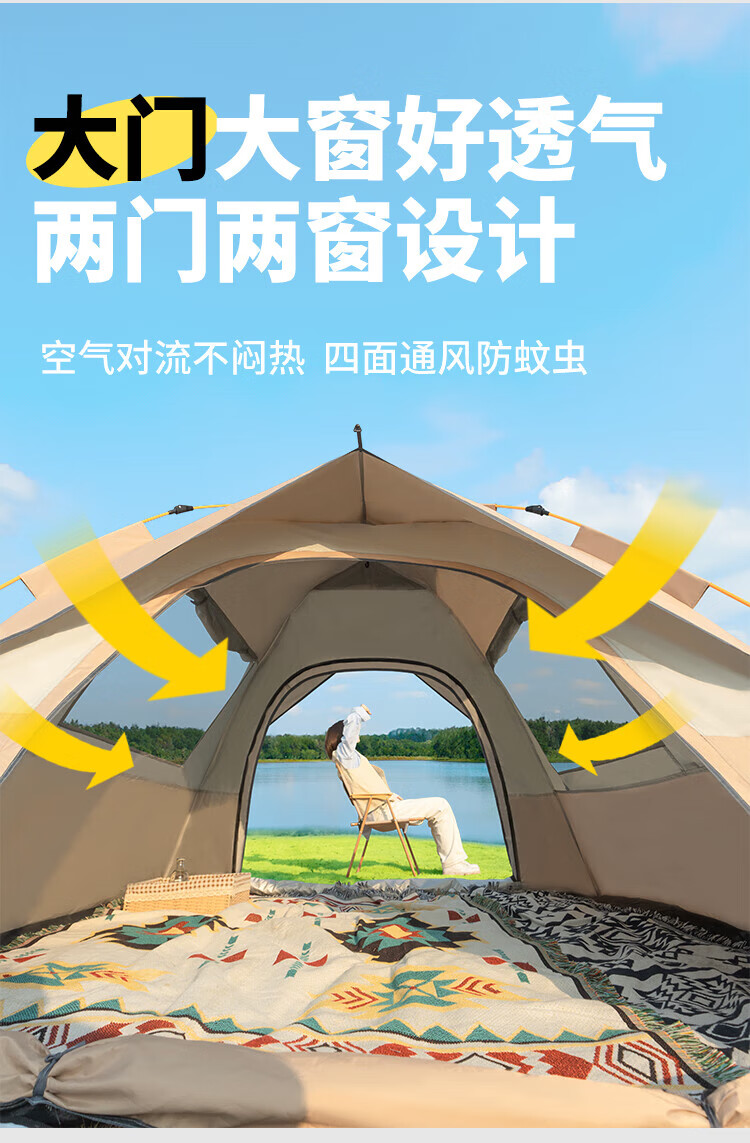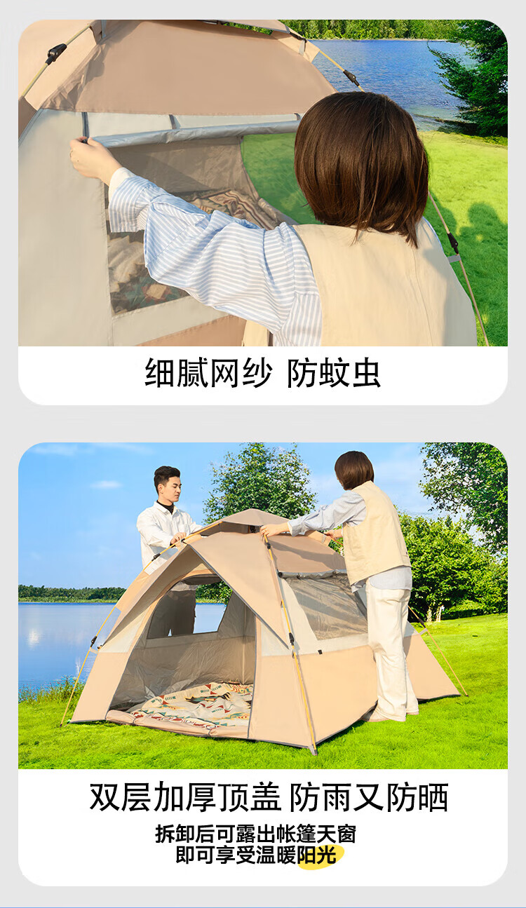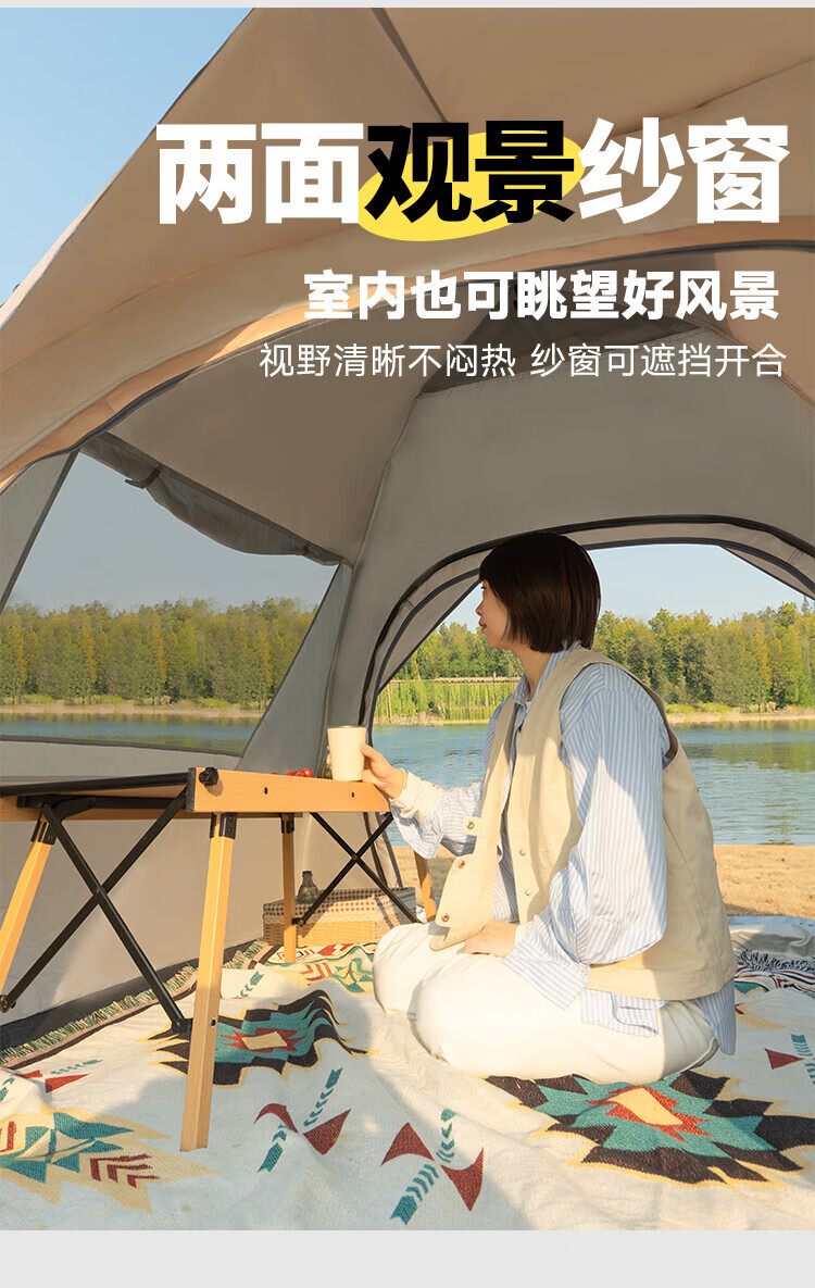 帐篷非常好用 防风防晒 非常舒适 出去露营都带着特别舒适 颜色也很好看,价格也不贵,推荐有需求的朋友可以入手一个。