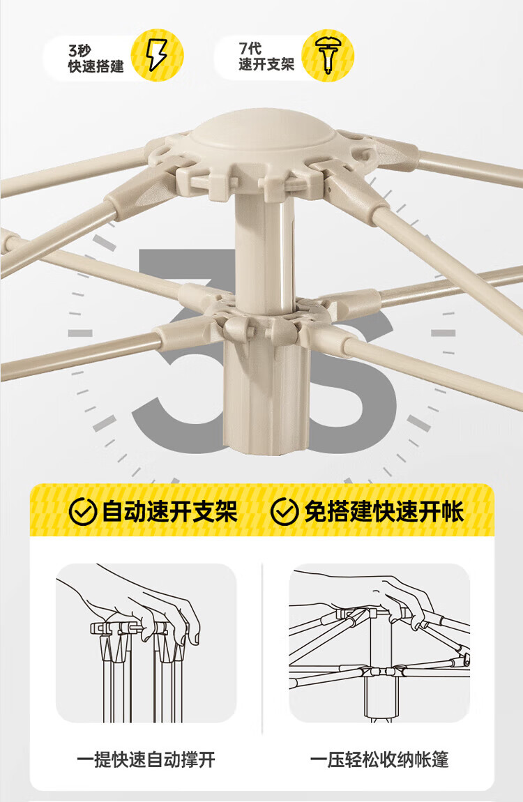 何佳功新燕尾天幕户外露营懒人免安装加厚黑胶防晒遮阳防雨速搭天幕 速搭型12㎡银胶天幕3.3*3.6米2-4人(1