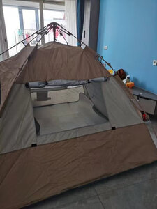 帐篷非常好搭,我是重来没有搭过帐篷的人今天第一次一个人操作,我买的大点的帐篷,带小朋友在里面玩耍空间非常大,很不错。也推荐给朋友了,好东西必须要来好评一下