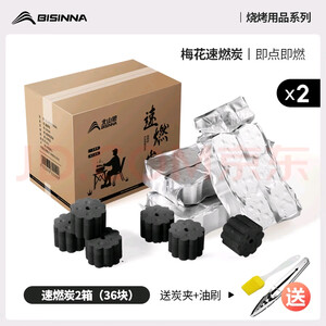 北山狼 户外露营烧烤木炭果木炭引燃家用烧烤碳耐烧速燃碳烤火取暖易燃 梅花速燃炭(18块)送炭夹+油刷