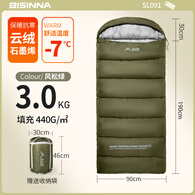 北山狼 石墨烯冬季睡袋成人户外便携式露营睡袋被子二合一加厚防寒 3.0kg风松绿【适温-7°C~12℃】
