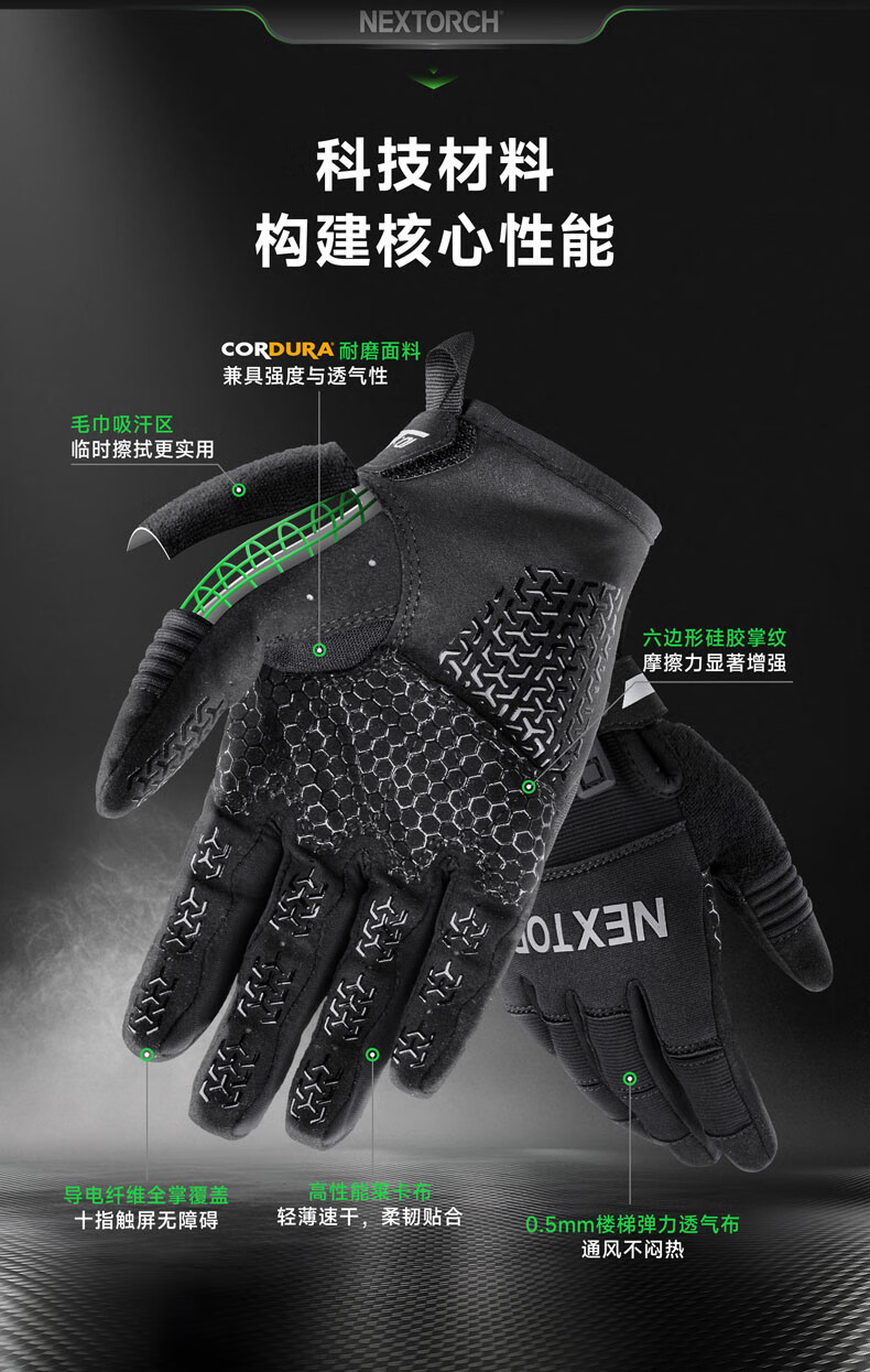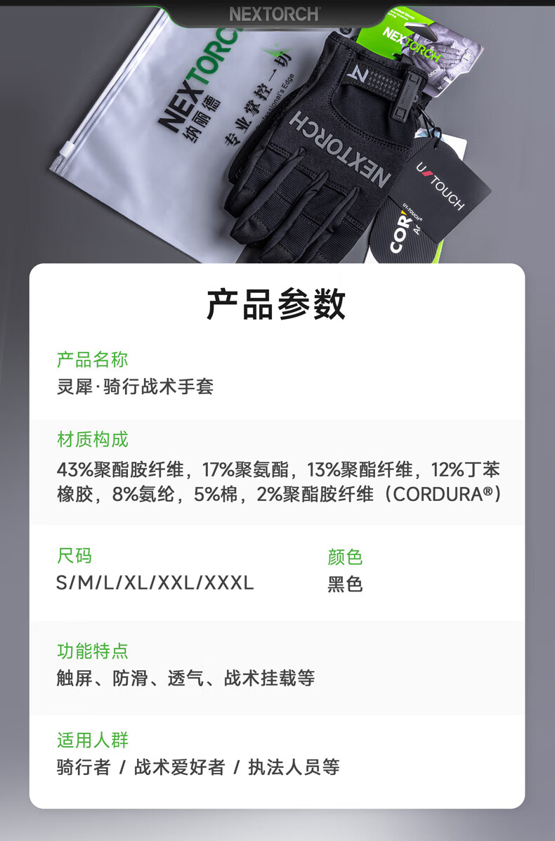 纳丽德(NEXTORCH)灵犀手套超薄户外防护手套山地公路自行车骑行手套全指触屏手套 码数:L