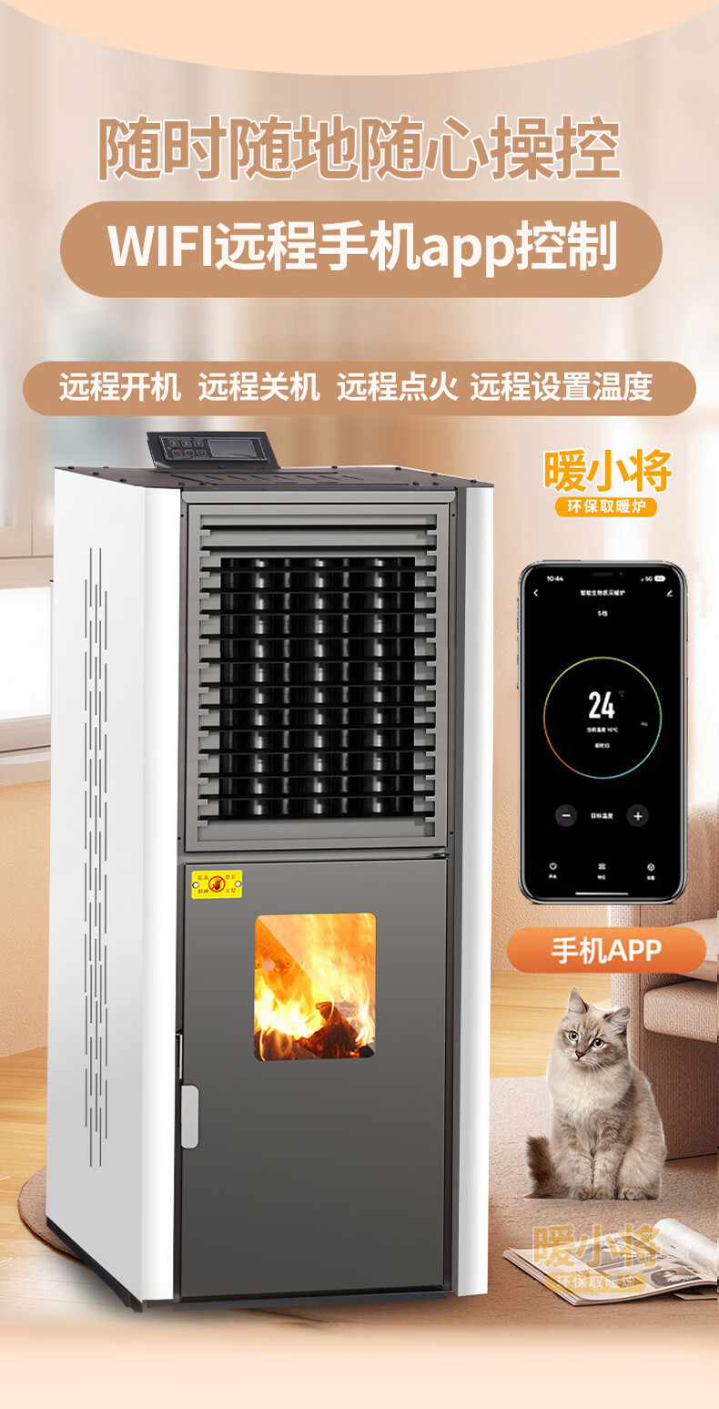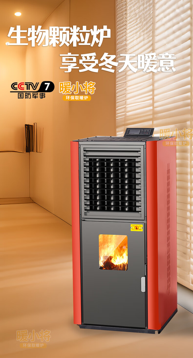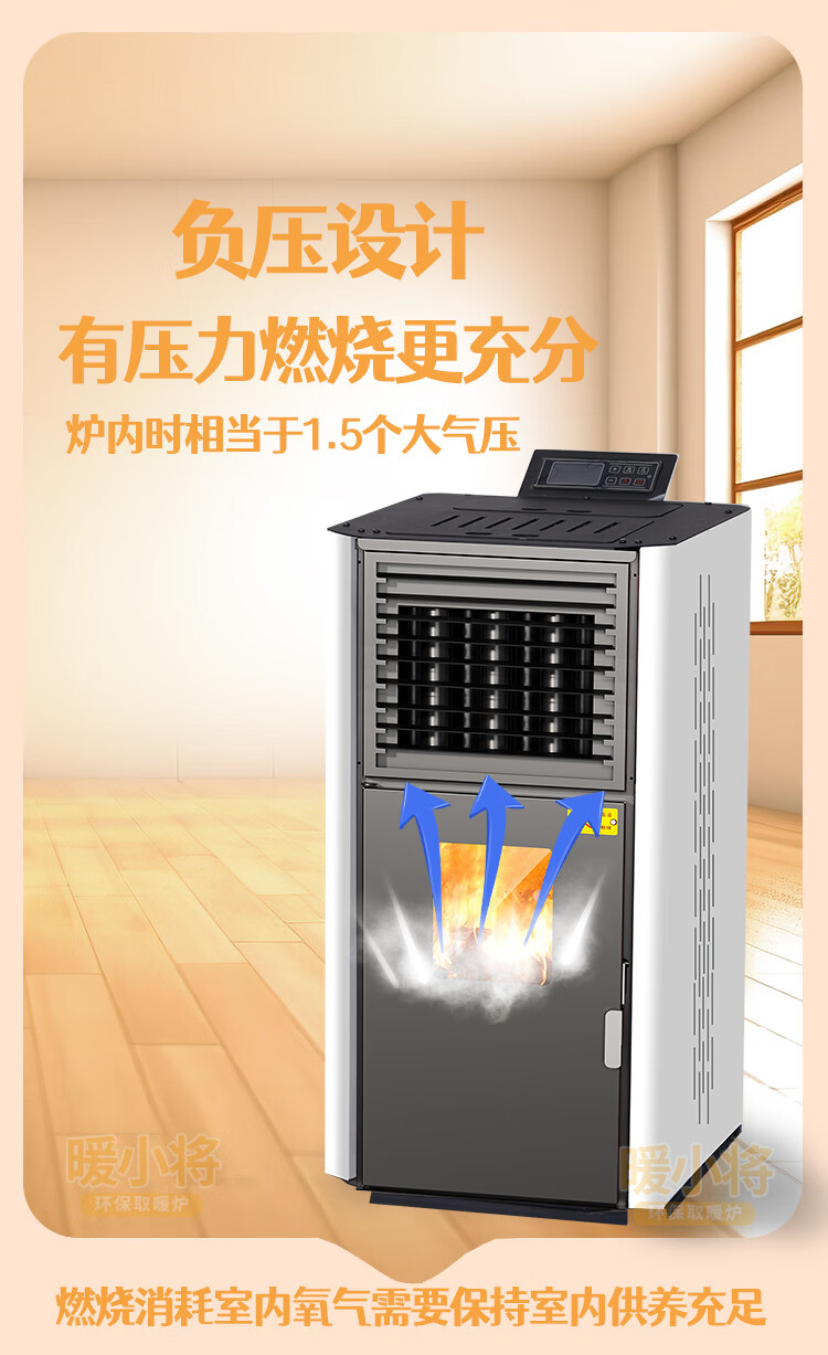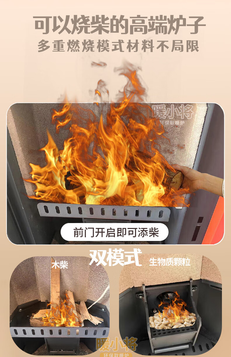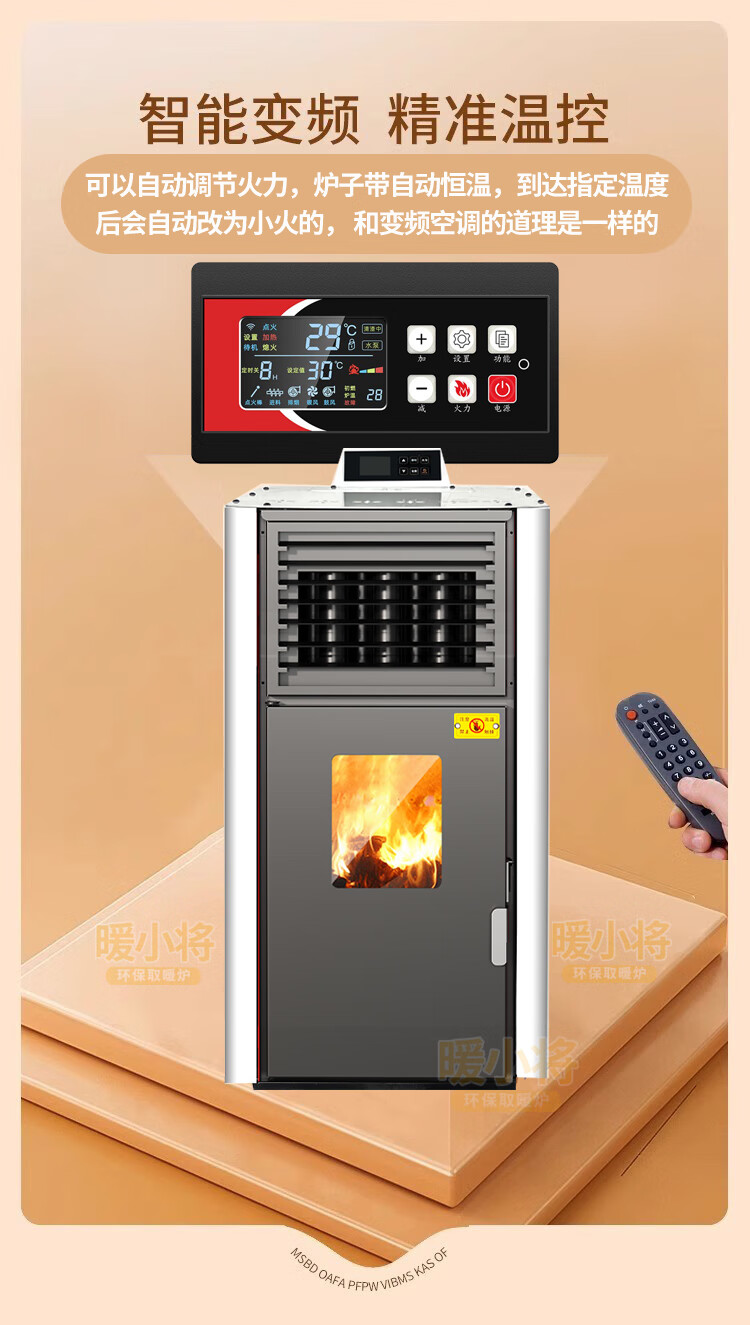 暖小将1生物质颗粒取暖炉家用室内环保燃料炉智能全自动无烟采暖烤火炉 S200型【颗粒/木柴两用】