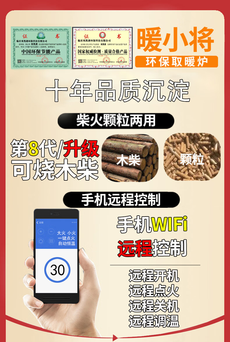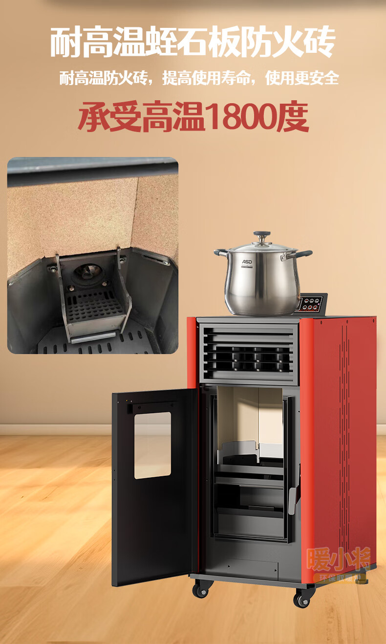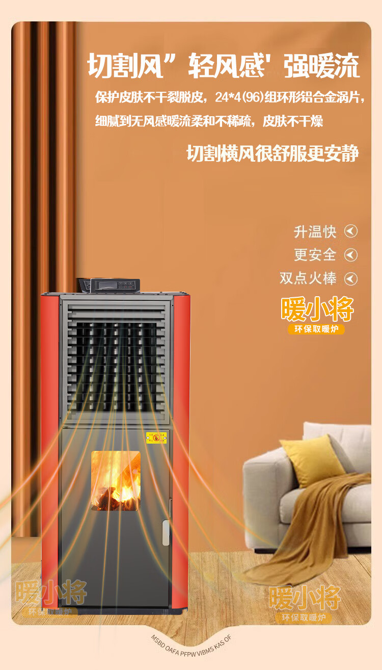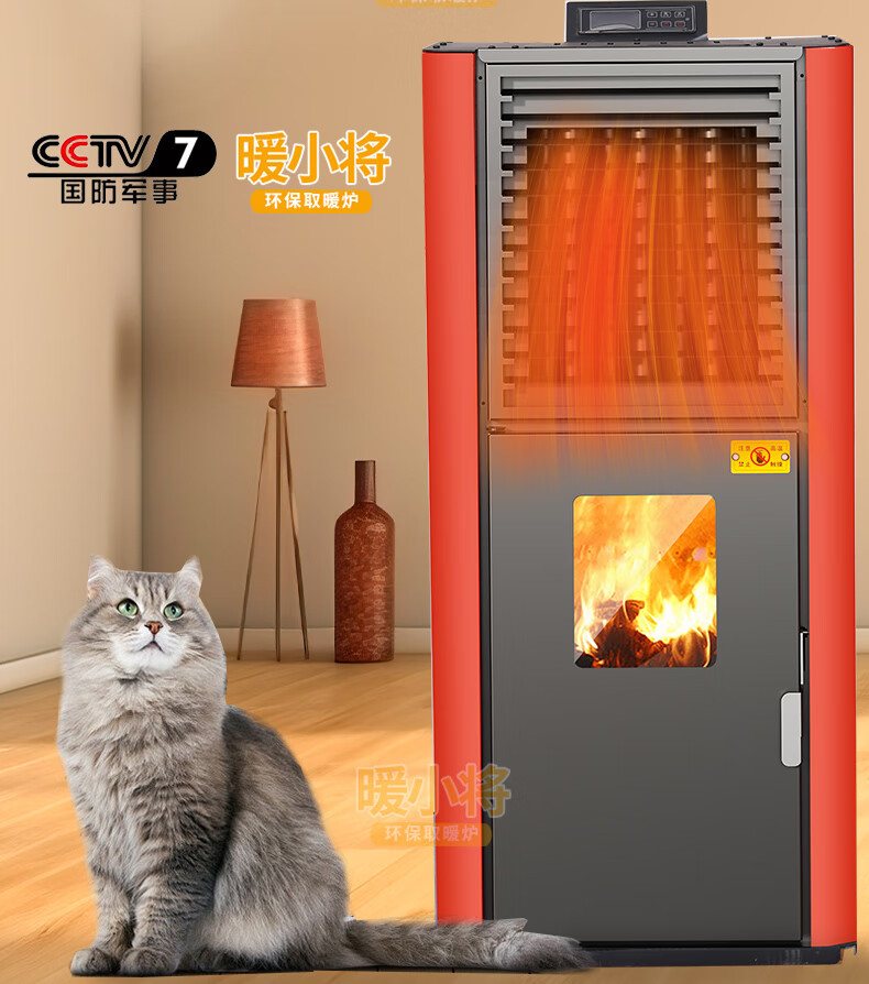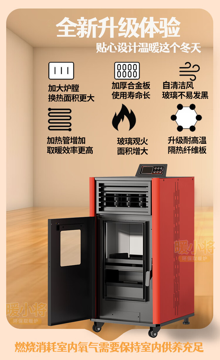 暖小将1生物质颗粒取暖炉家用室内环保燃料炉智能全自动无烟采暖烤火炉 S200型【颗粒/木柴两用】
