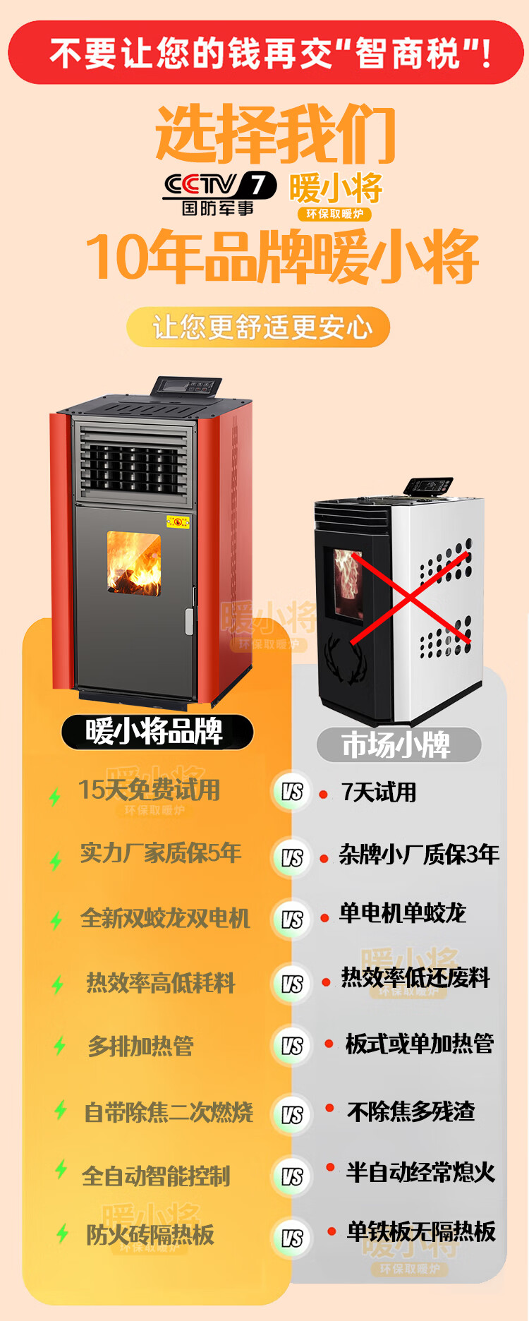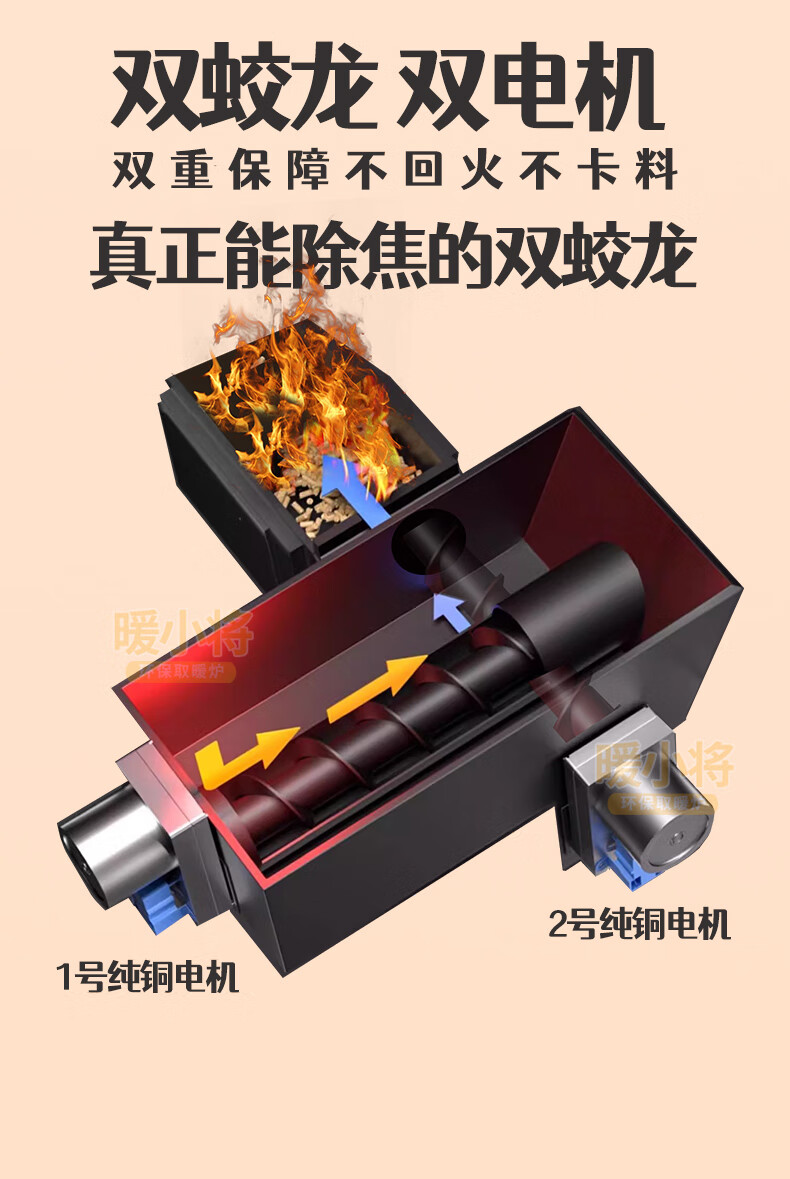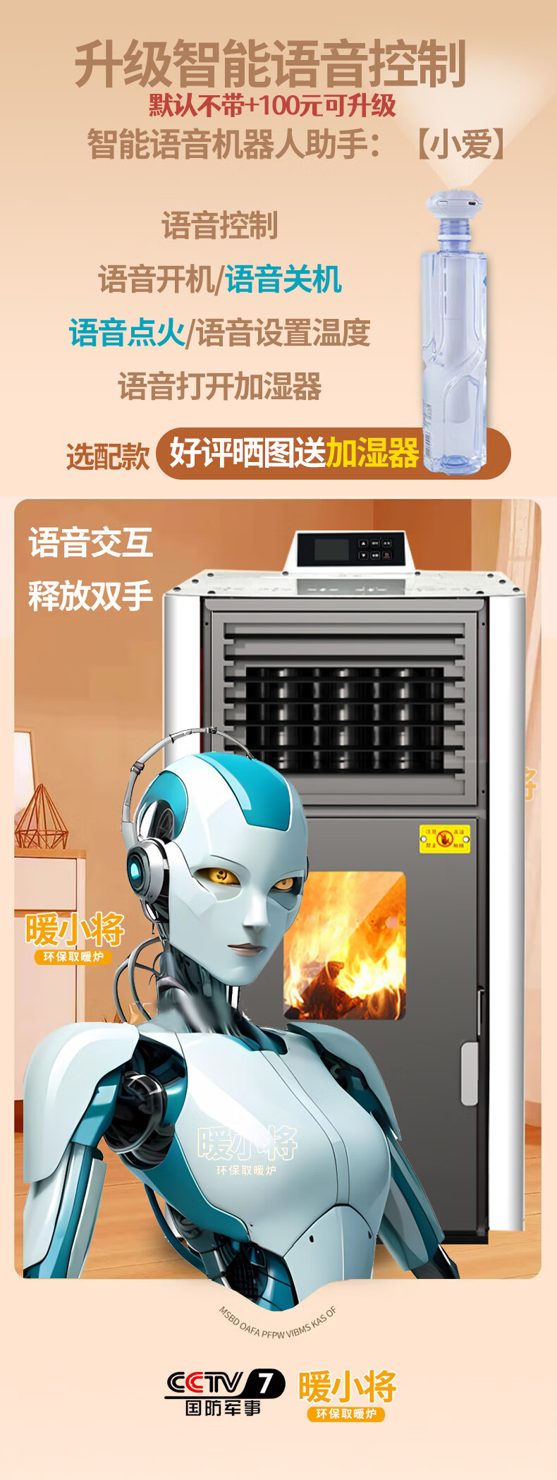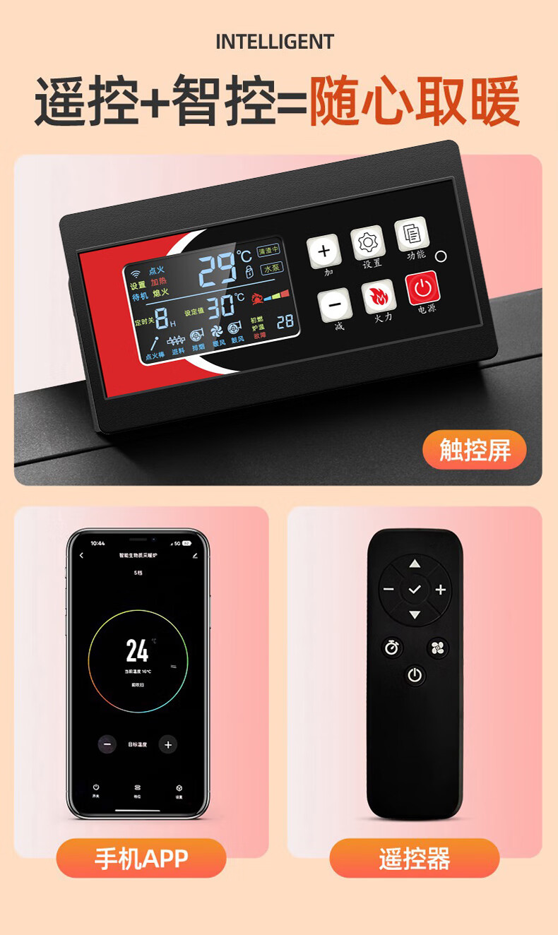 暖小将1生物质颗粒取暖炉家用室内环保燃料炉智能全自动无烟采暖烤火炉 S200型【颗粒/木柴两用】