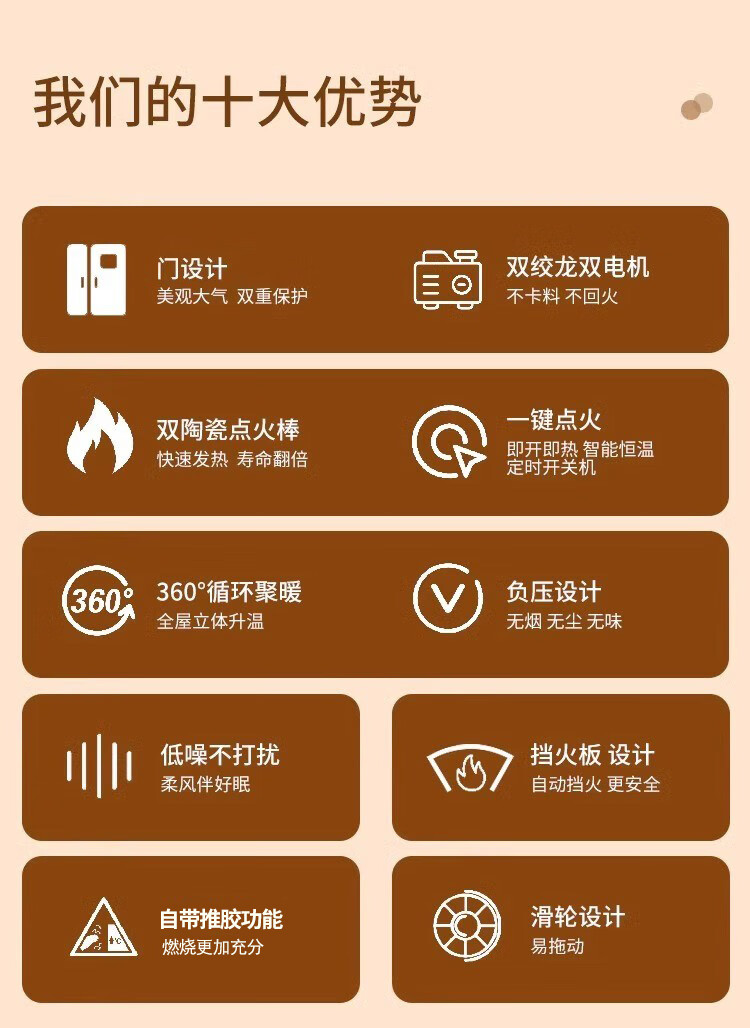 生物质颗粒炉收到有几天了,今天试用感觉不错,升温很快在卧室用的,声音很清而且无灰尘密封不错,价格很便宜整体样式很漂亮。客服解释清楚到位,值得推荐!