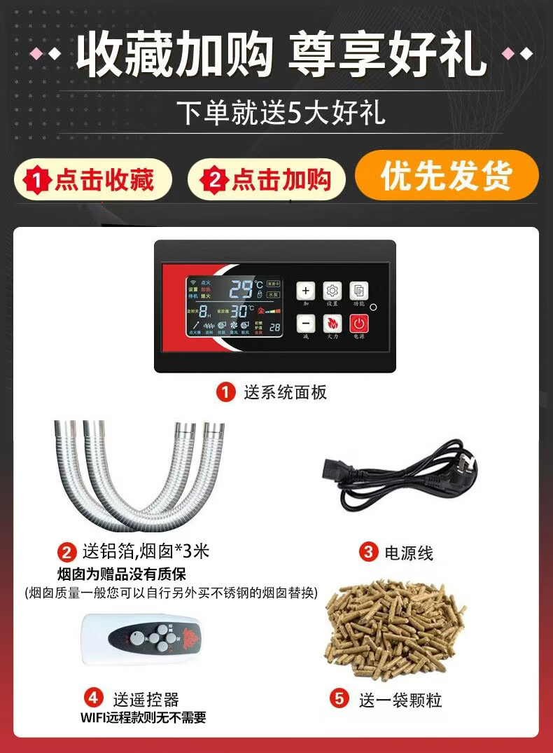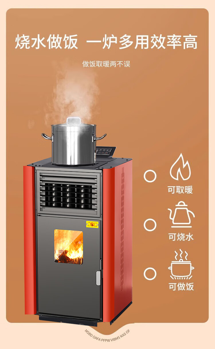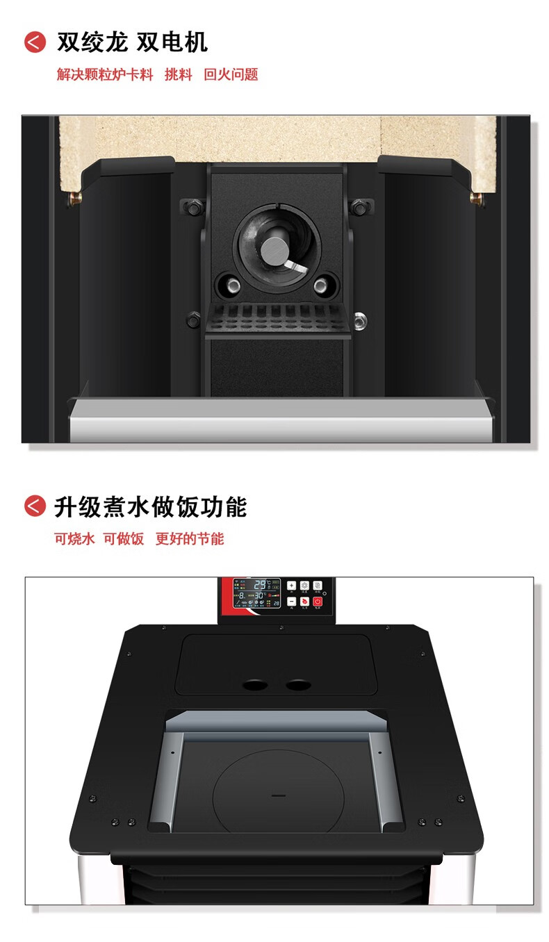 丰强鸿新型颗粒取暖炉全自动生物质燃料柴火家用室内供暖环保无烟水暖 【WiFi旗舰+炊事烧烤+颗粒木柴两用】260双绞龙双电机