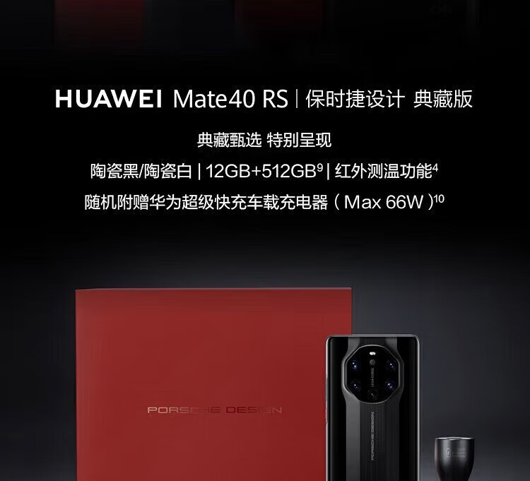 华为(HUAWEI)Mate40RS 保时捷设计 典藏版麒麟9000 5G手机感知徕卡电影五 陶瓷黑 8GB+256GB