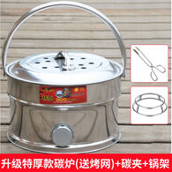 烧烤取暖烤火炉木炭烤火炉烤火盆家用农村老式不锈钢碳火盆户外手 升级特厚款烤火炉+碳夹+锅架送烤网