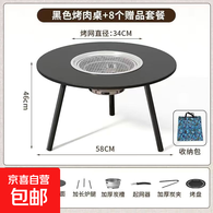 户外折叠桌露营烧烤桌子家用户外野炊便携式烤火炉炭炉围炉煮茶桌 黑色8件套【至尊款】+不锈钢盆