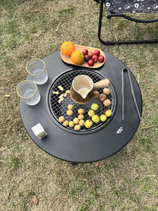 围炉煮茶氛围很好,也可以用来烧烤,下面还有很多个通风口,火力嘎嘎旺。这个方格烤网我也很喜欢,围炉煮茶的时候,放点小花生也不会掉下去很棒,煮茶很香烤水果也很 nice 解锁暖冬。