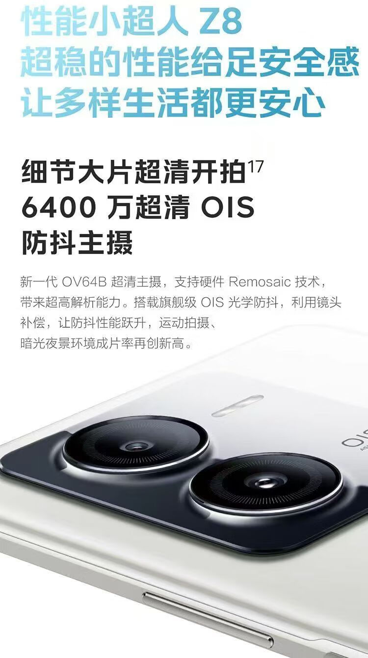 iQOOZ8 天玑8200芯片 冰极立体散热 6400万防抖主摄 零感蓝光原彩屏 星野青 12GB+512GB 单机+第三方品牌快充+店保1年