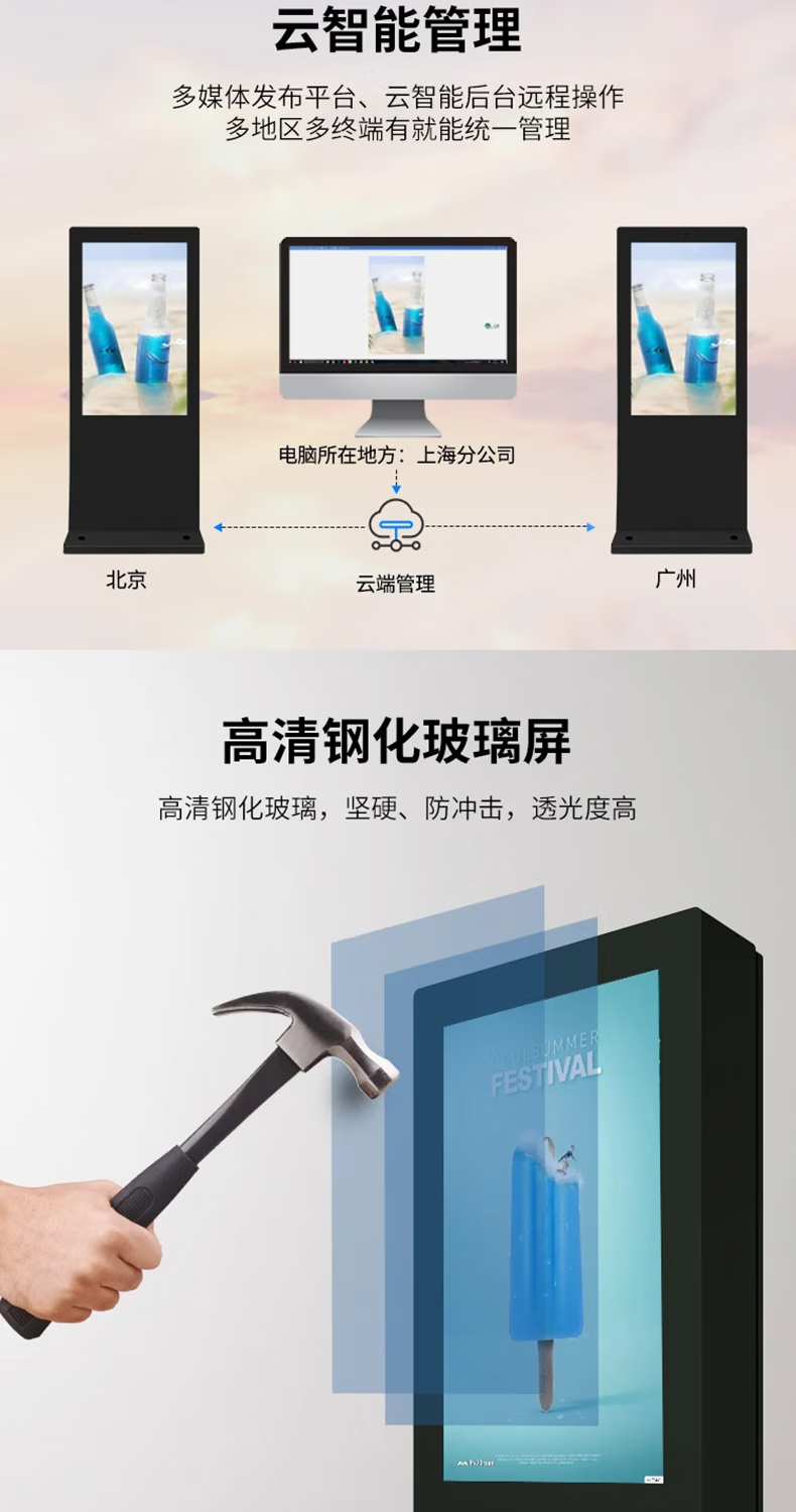 阅扬立式户外广告机显示屏高亮防水触摸一体机防雷防尘可壁挂落地宣传屏 21.5英寸 单机版