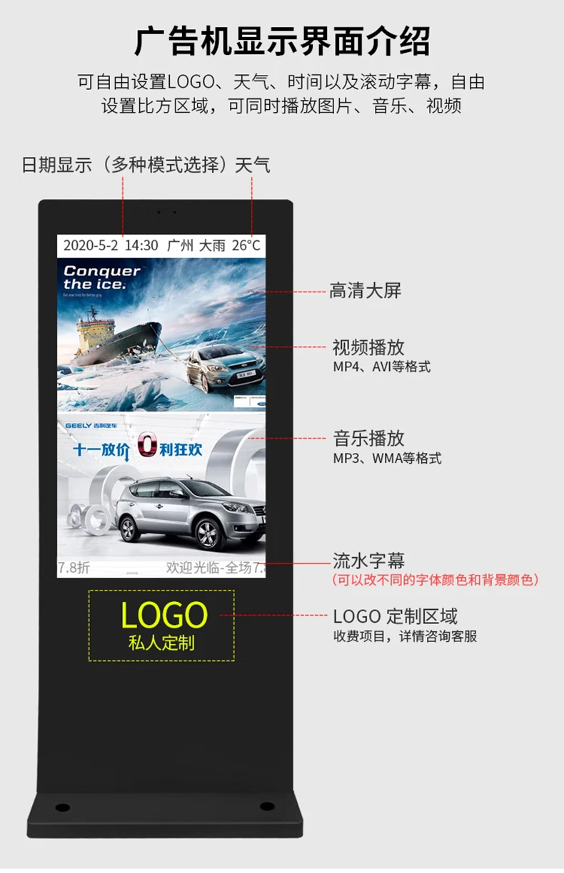 广告机已经安装并使用了,机子播放画面清晰,运行正常流畅,质量挺好的,屏幕大小合适满意。