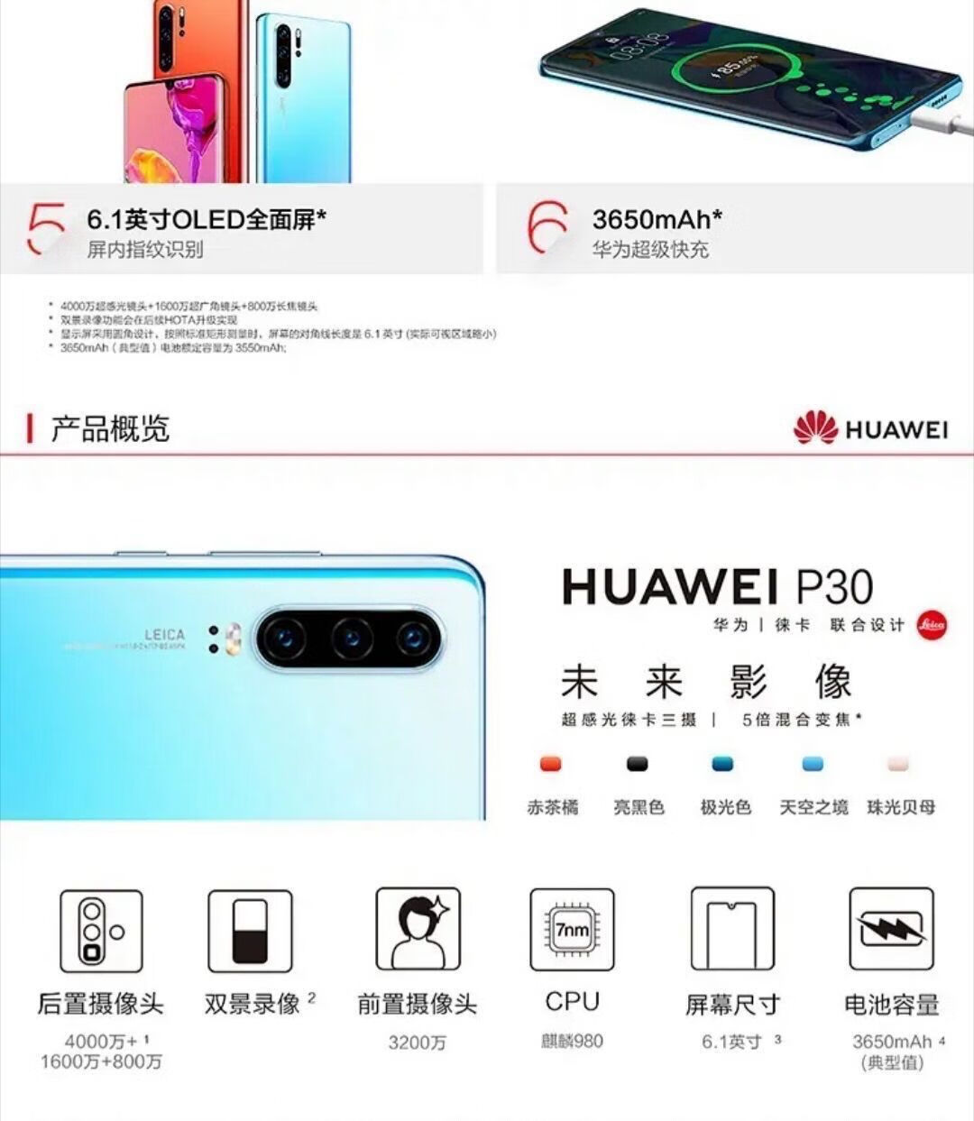 华为P30 Pro 全网通4G双卡双待曲面屏P30超感光徕卡四摄商务游戏手机 珠光贝母 P30 Pro曲面屏 8+256G