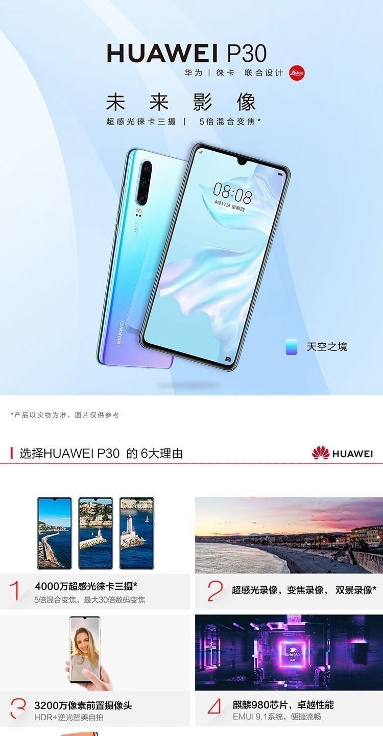 华为(HUAWEI)P30 Pro 麒麟980处理器6.47英寸60Hz刷新率4000万像素4200mAh双卡双待超长待机学生校园老年备用机 天空之境 曲面屏 指纹解锁+面容识别 九九【新】x 8GB+128GB x 全网通4G
