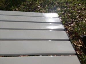 到货后用了一段时间再来评论的,拆开没仔细看,后来才发现桌面有一段部分呈现凹凸瑕疵。但不影响整体使用。考虑到调换来调换去的也麻烦…就着么着用吧。整体实用性还是可以的,春季和秋季阳光明媚适合户外休憩/放置书本阅读使用。整体不错,客服态度也很好。