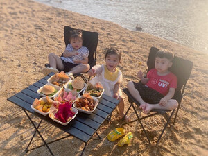 露营必备的神器,夏天带娃出去玩,搁水里面一放,稳固结实,再备点小零食,小饮料,孩子们玩得可开心了,桌子和椅子的重量都很轻,孩子自己背着上山,而且结实稳固,超赞
