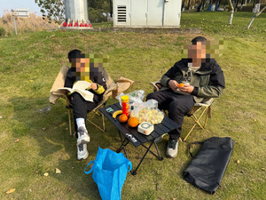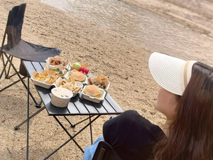 同一个位置晒太阳 有桌子还是要方便很多 拼装很简单 质量也还行 放点吃的没问题 收起来也比较轻 装起来就好了 有了露营椅配个桌子还是合适的