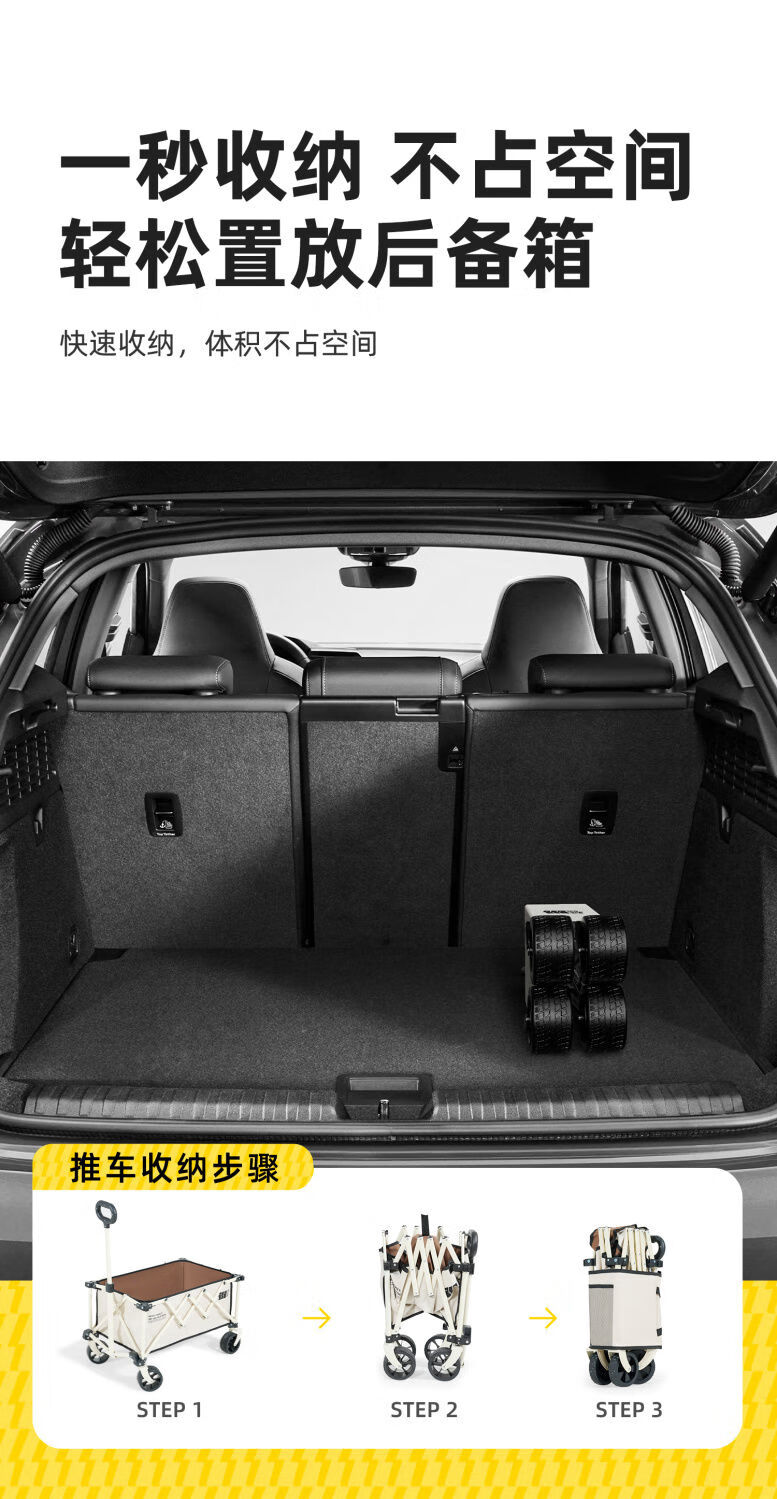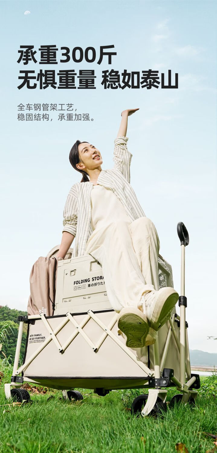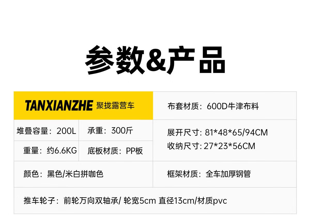 探险者的这一款露营车大小刚刚好,一套露营装备装上正正好,承重很是不错,小朋友也可以坐上去,,聚拢收的,放后备箱不占地方~~