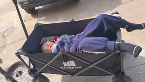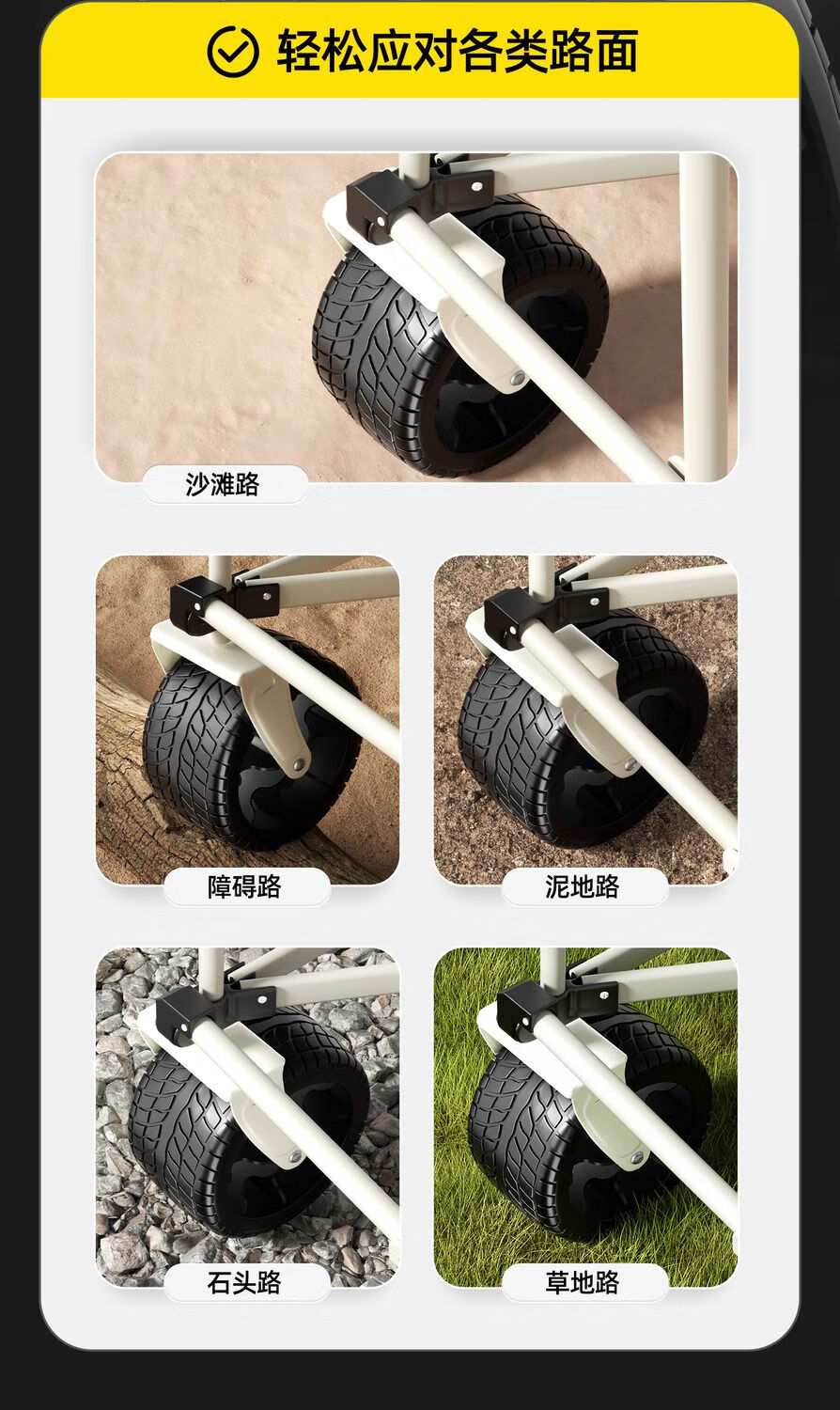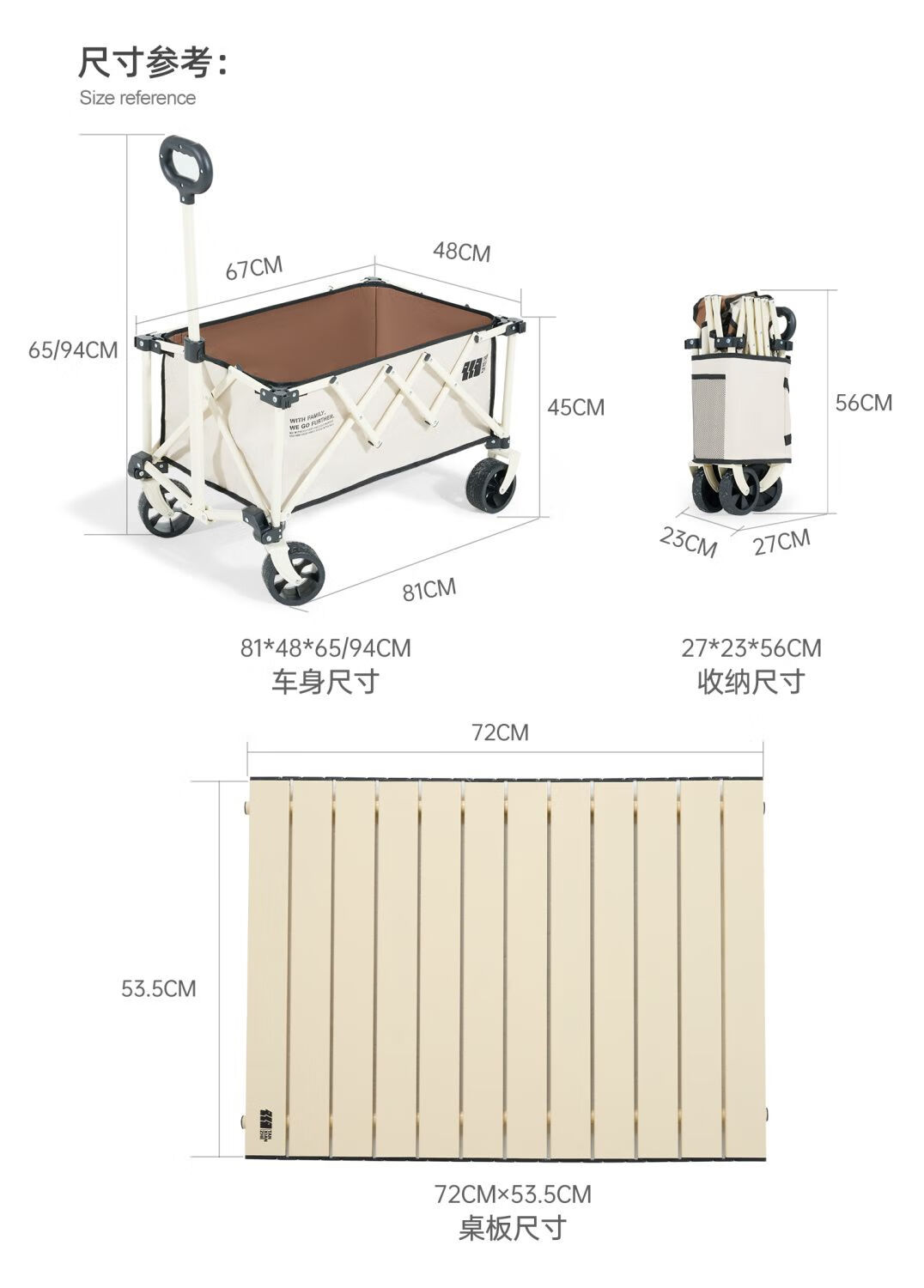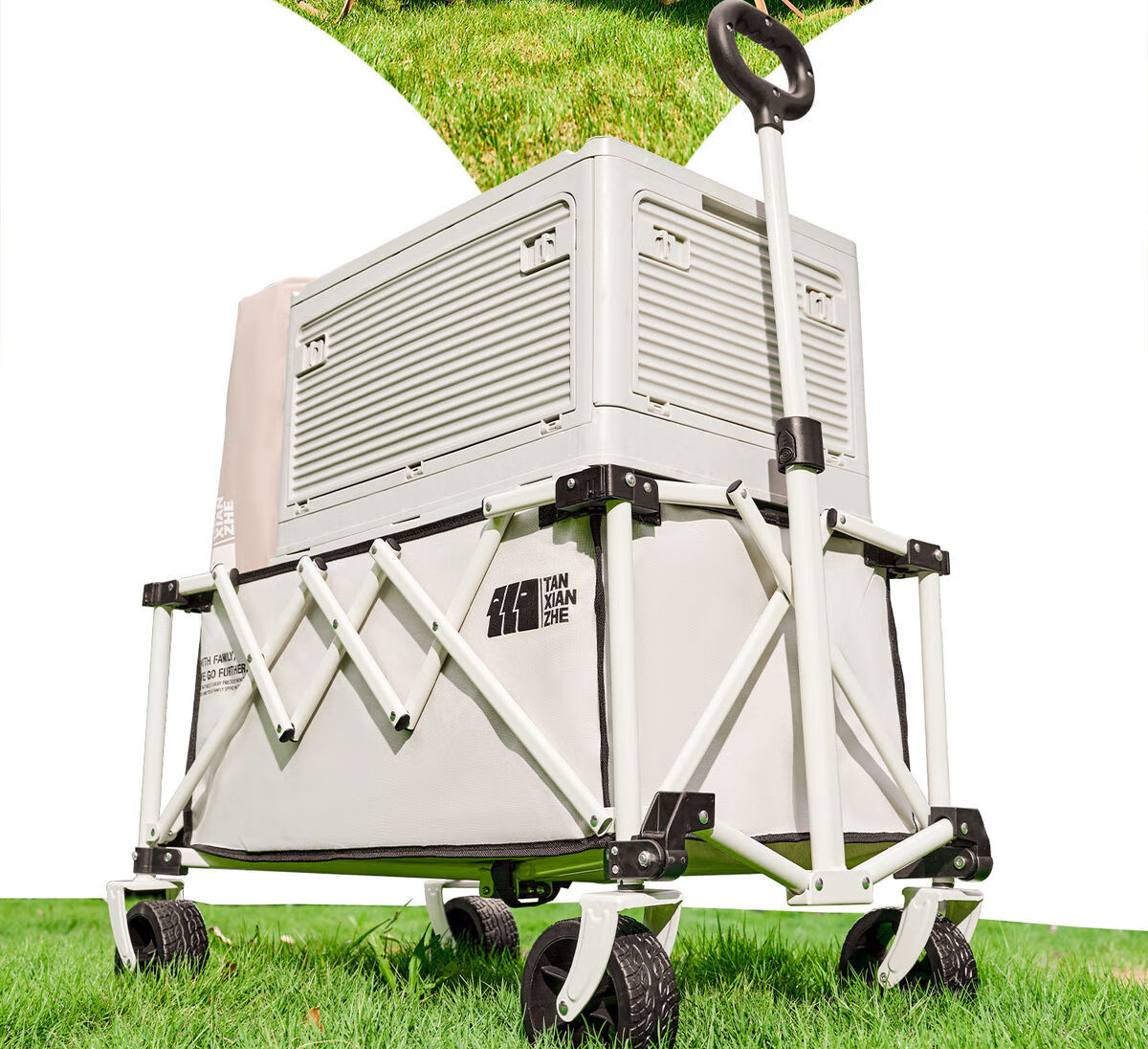 探险者的这一款露营车大小刚刚好,一套露营装备装上正正好,承重很是不错,小朋友也可以坐上去,,聚拢收的,放后备箱不占地方~~