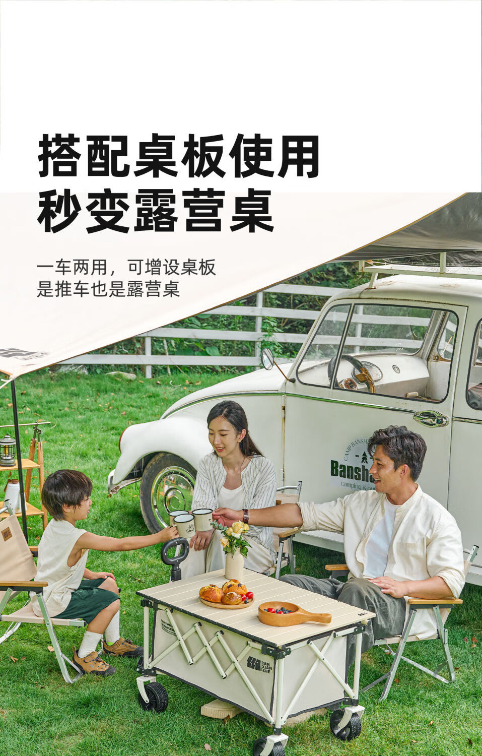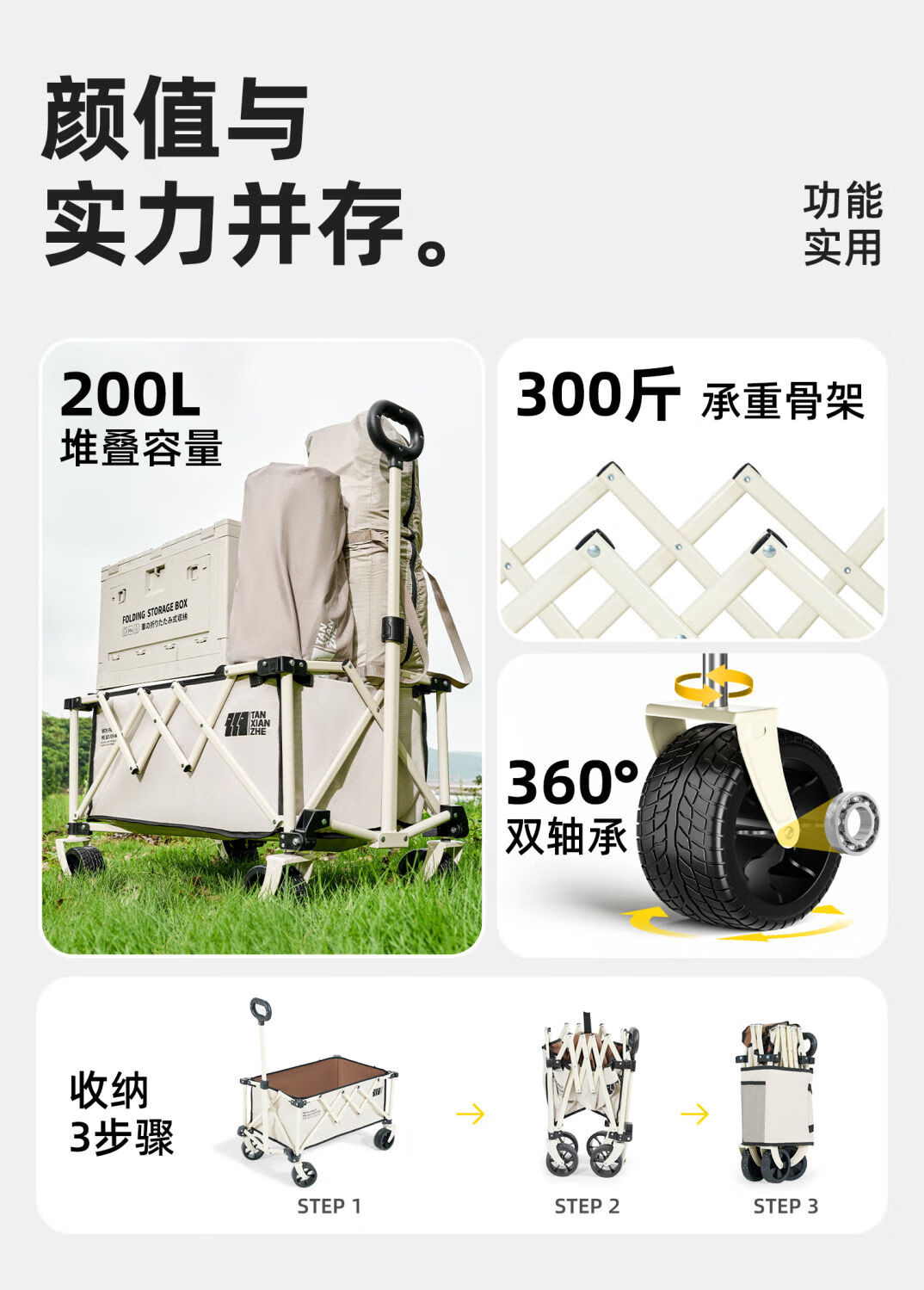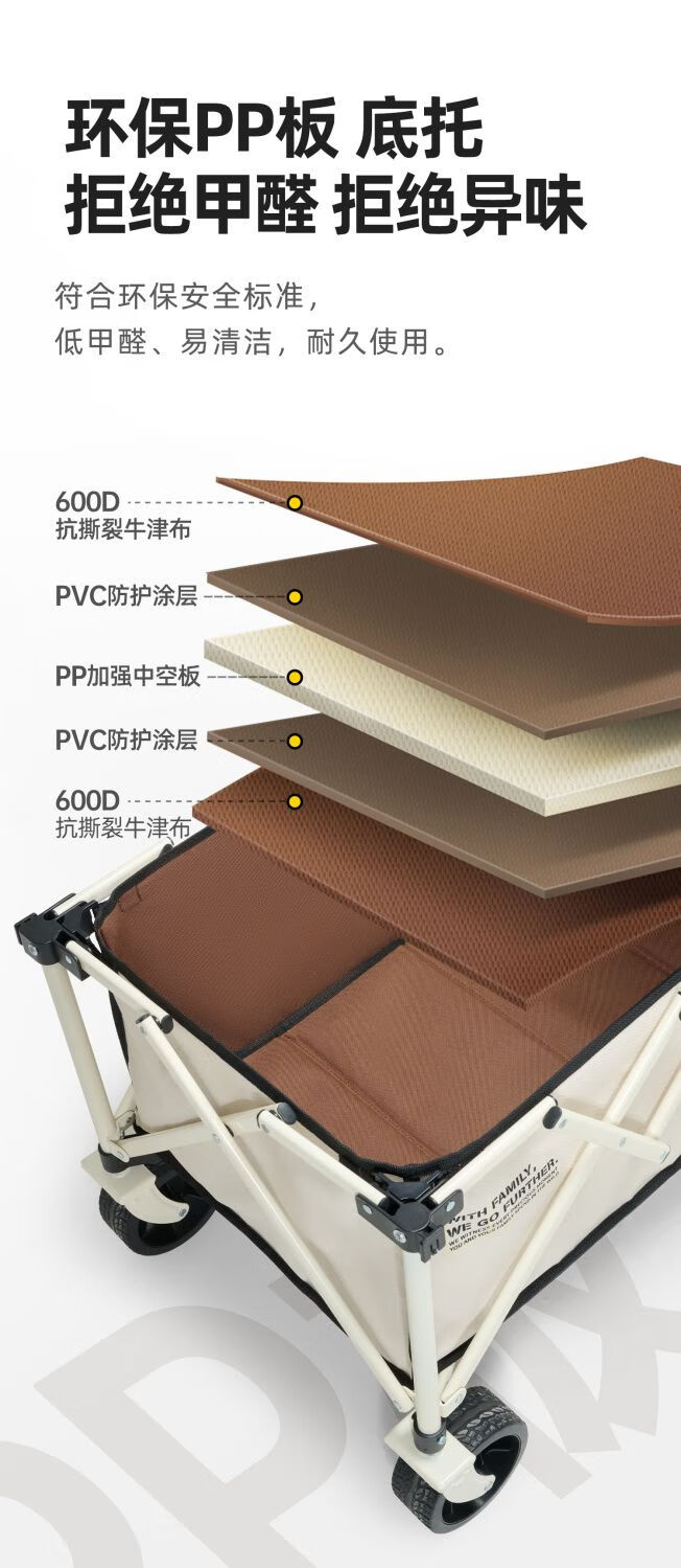 探险者(TAN XIAN ZHE)露营车坦克轮带桌板露营车户外折叠特大号快递车小拖车野餐拉车 150L 淡栗棕实心静音轮+桌板