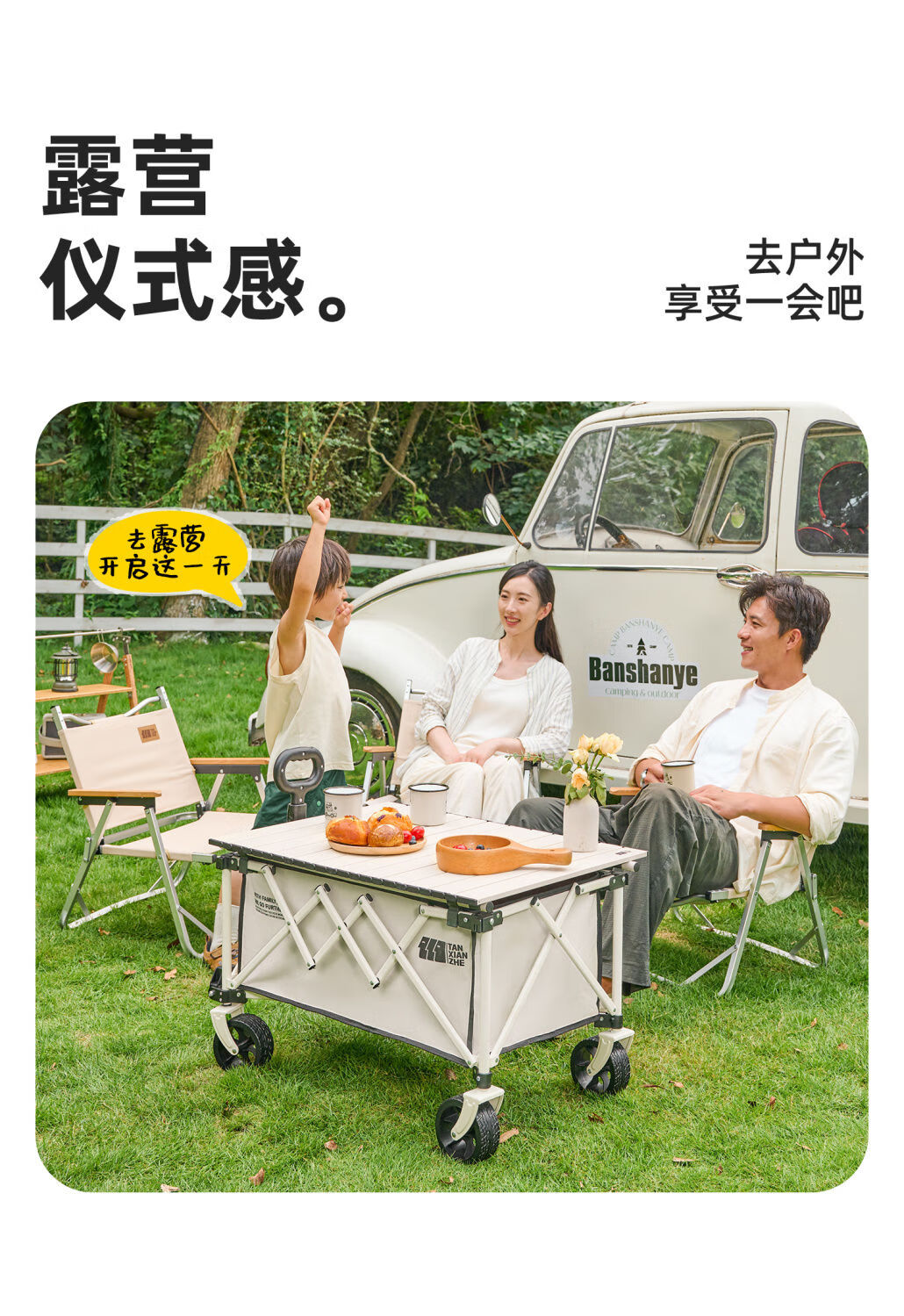 疆屿露营车野营户外折叠手推车野餐摆摊拖斗车儿童可躺聚拢营地车