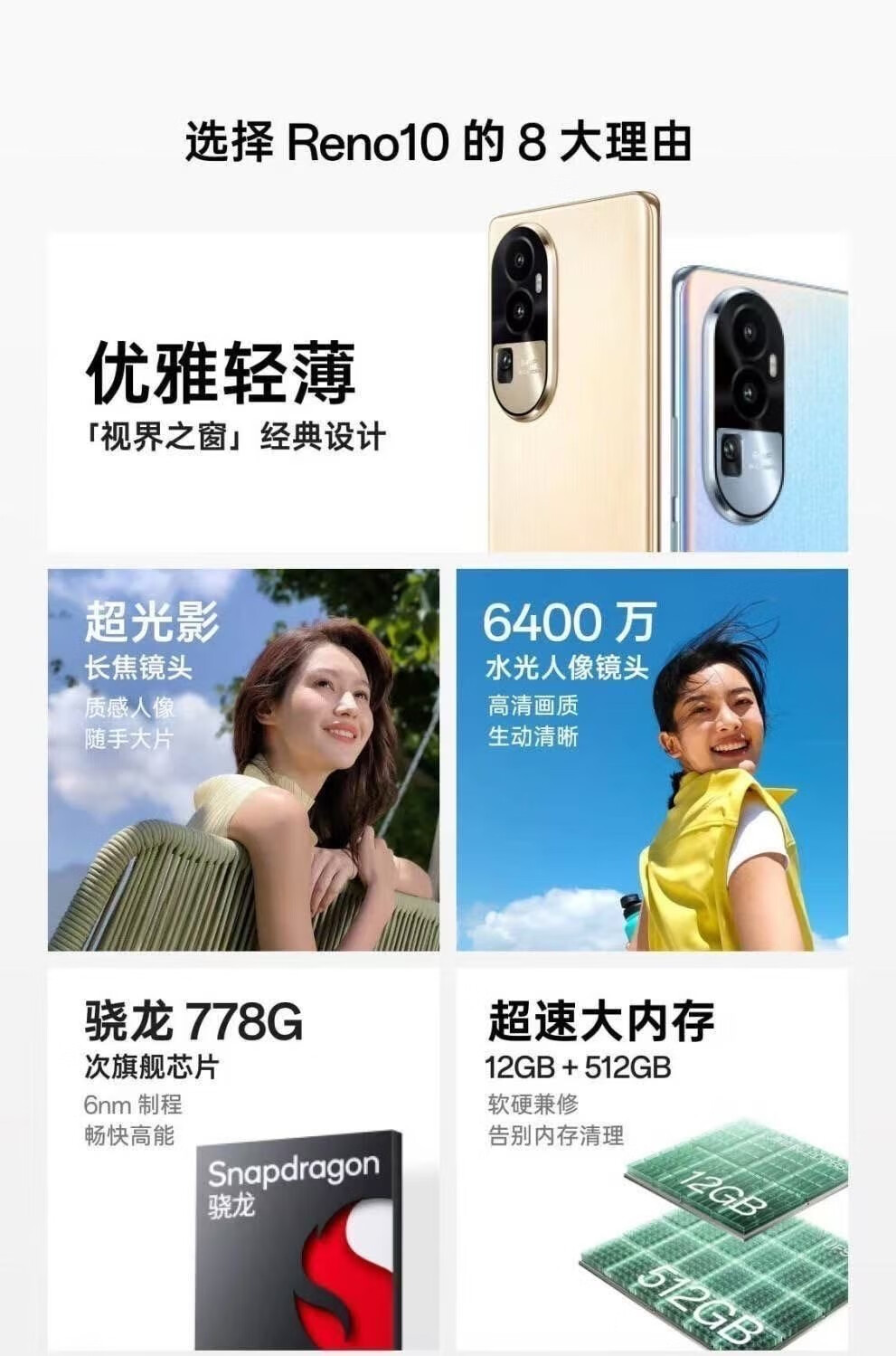 OPPOReno10 骁龙778G芯片超光影长焦镜头120Hz OLED 超清曲面屏 月影黑 12GB+512GB 单机+品牌快充+【店保一年】