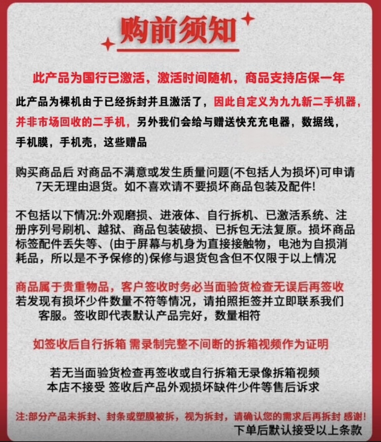 商品是已激活,激活日期随机的官方正品机,官网可查,产品定义准新机,单机到货,后配包装。上市一年内都是有官方保修,过保的默认店铺保修一年。