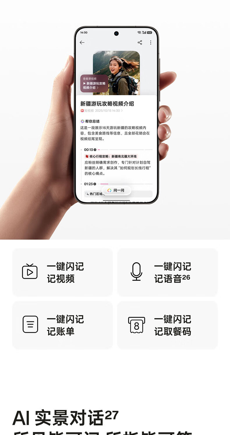 AI大模型,轻薄,高频PWM调光,潜望式长焦,NFC