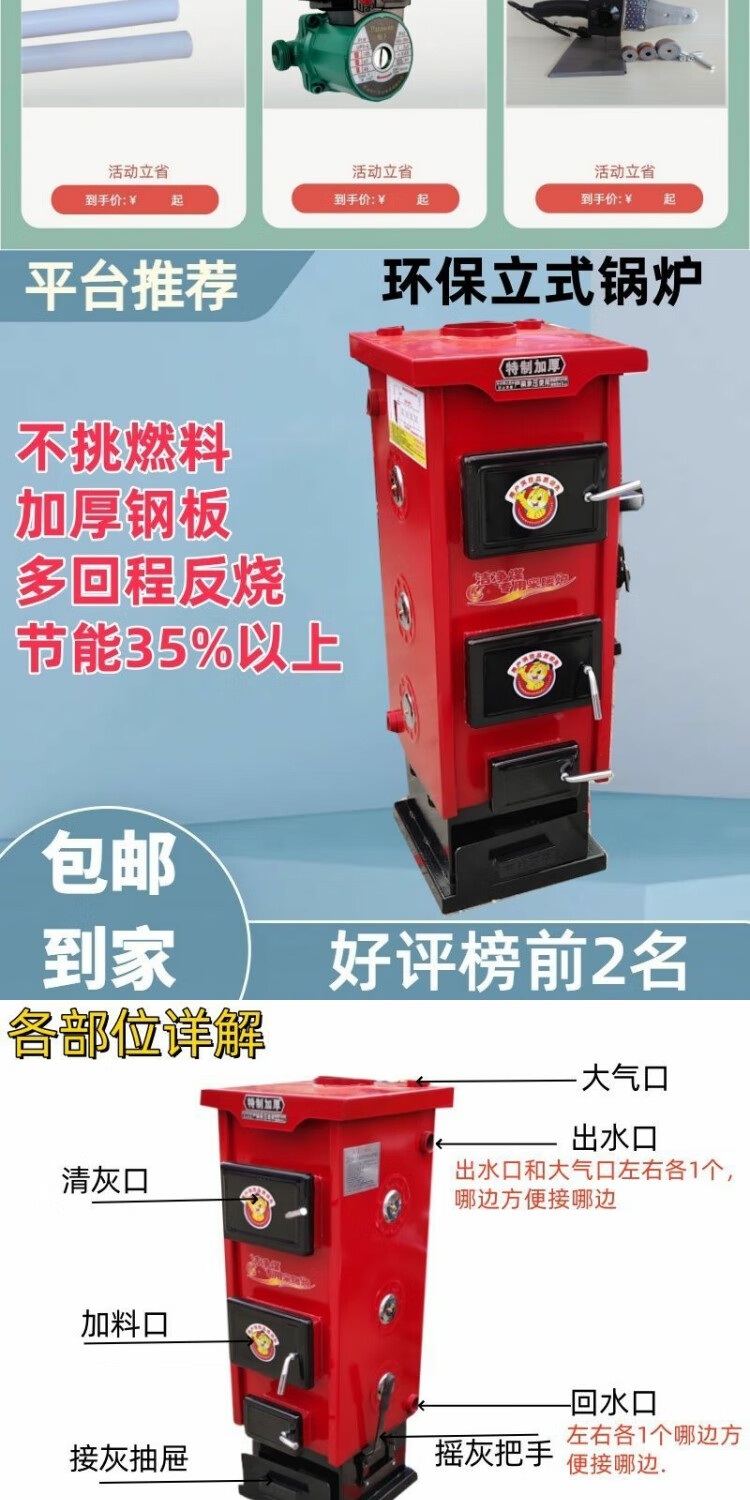 宇玛立式锅炉燃煤采暖炉节能暖气炉新款反烧两用炉子农村取暖地暖新款 500平#特制加厚款+节能反烧