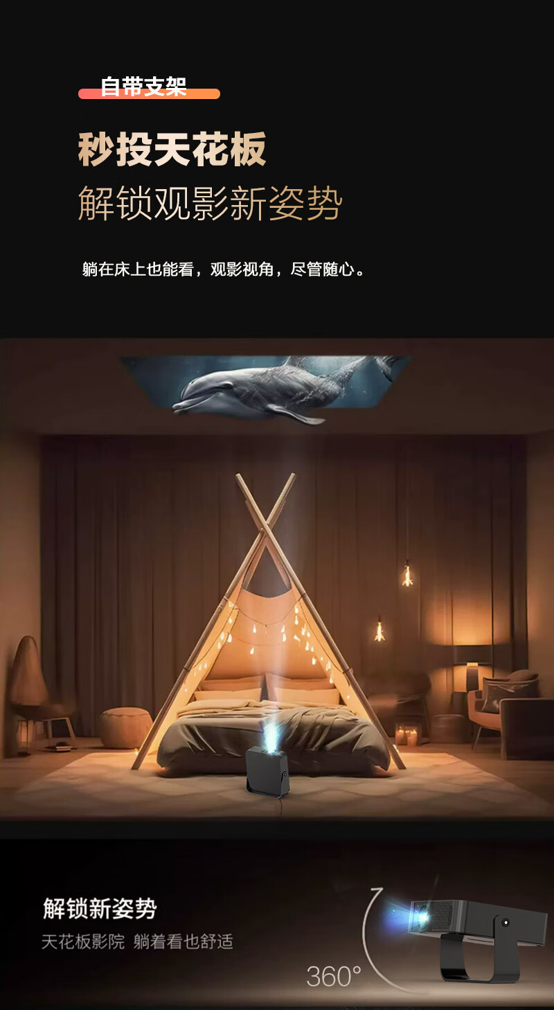 华为机HUAWEl适用超清云台投影自动对焦超清投影仪家用卧室投墙激光电视 [带云台]8K解码+密闭光机+海思 标配