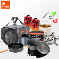 火枫(FIRE-MAPLE)野炊锅具厨具套装户外擎天炉套锅折叠炉子烧水壶野餐露营炊具气炉 擎天火锅烤盘煎锅水壶调味包套装