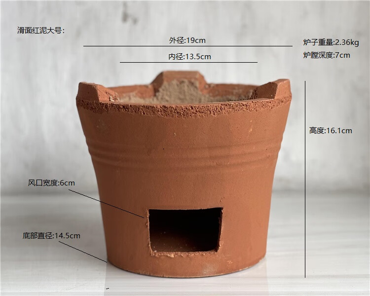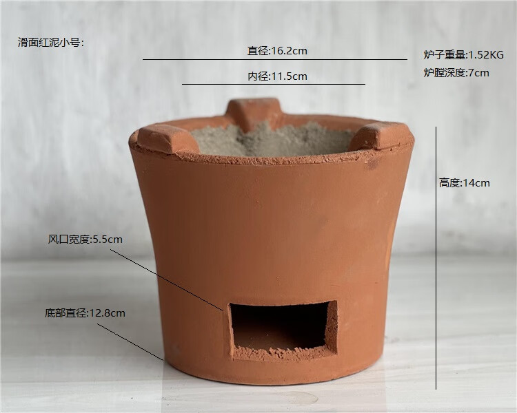 双幼潮汕炭炉木炭火锅炉家用老式陶土红泥烧烤炉商用围炉煮茶炉 滑面红泥(小号)