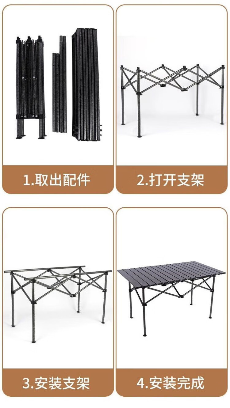 0.9M长露营桌椅户外折叠蛋卷桌野餐桌便携式桌子椅子一体全套装备 长桌【卡其色】