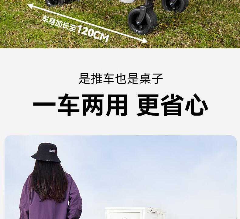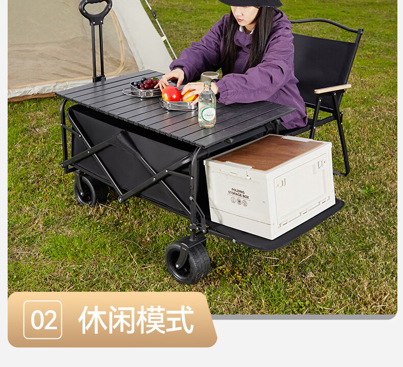 这款露营车性价比可以,黑色桌板实用,8寸轮子推起来稳当,物流按时送达,包装完好,整体符合预期。