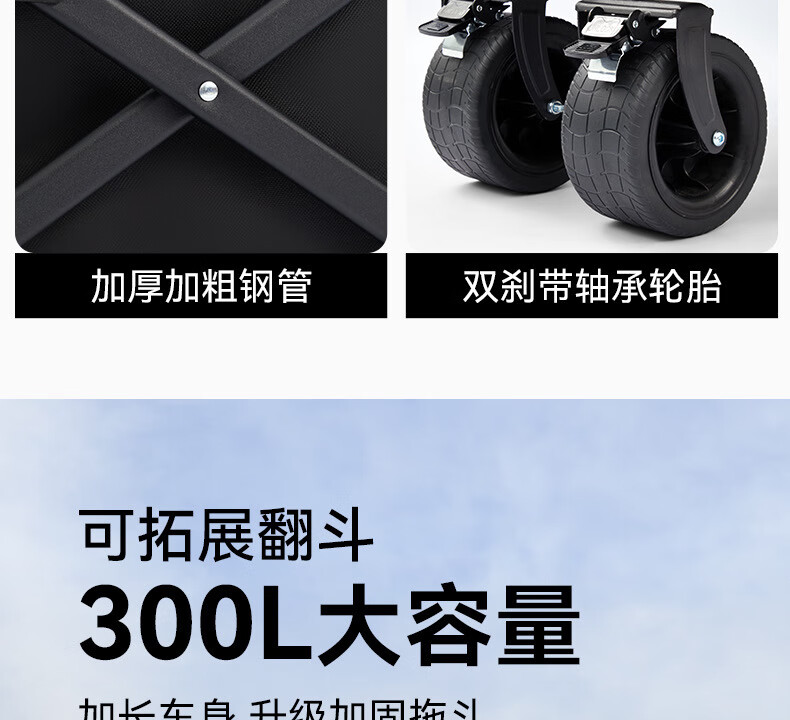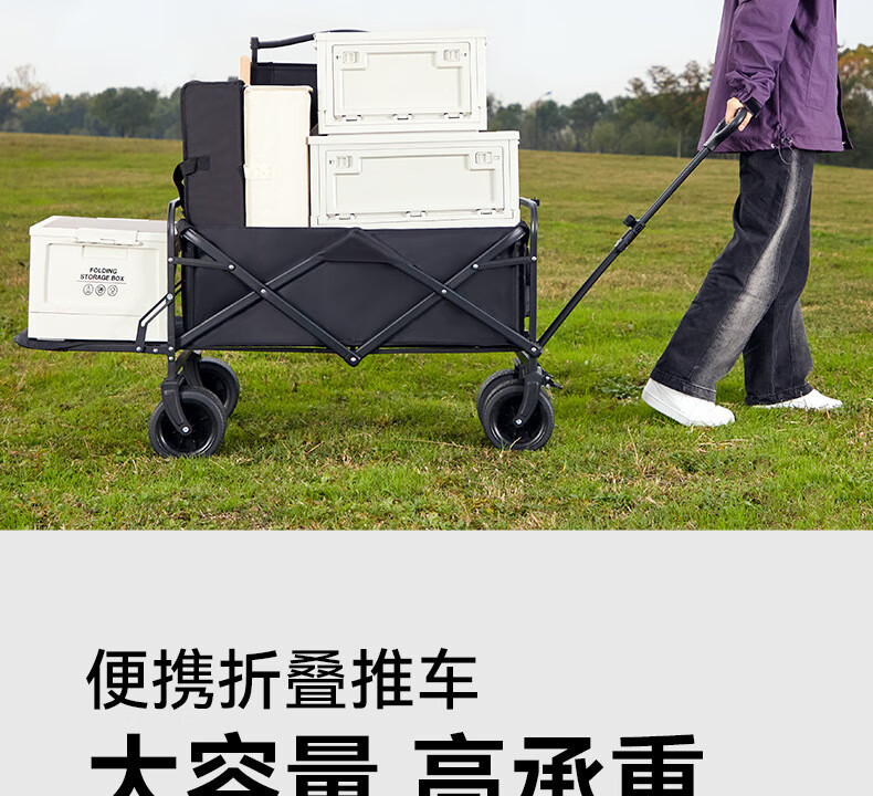 北乐户外露营推车营地野餐野营车折叠摆摊推车快递小拉车露营装备全套 暗夜黑 180L 有刹车