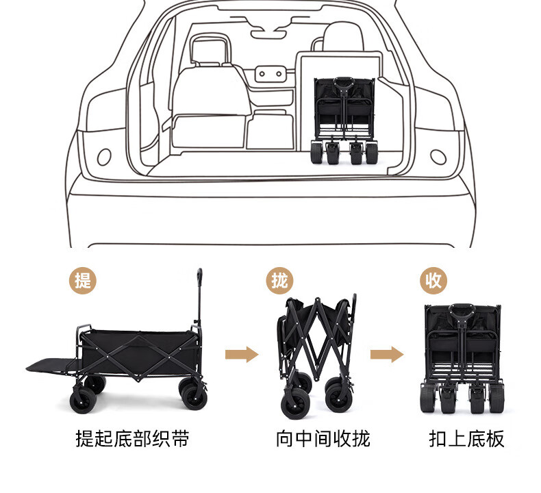 北乐露营推车可折叠户外营地车野营野餐拖车聚拢摆摊拉杆小推车拉车 【简易款】+黑色