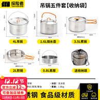 探险者户外锅具套装烧水壶野营炊具露营装备全套锅具304不锈钢 5-7人水壶+吊锅+煮锅+煎盘+蒸屉