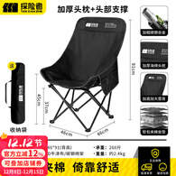 探险者户外折叠椅月亮椅便携式露营椅子钓鱼椅高靠背加厚躺椅家用小凳子 【加厚夹棉】黑色高靠背椅子