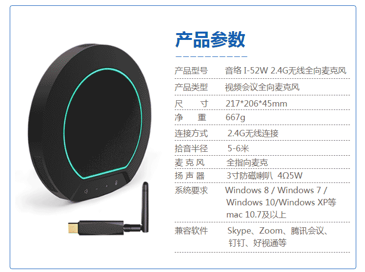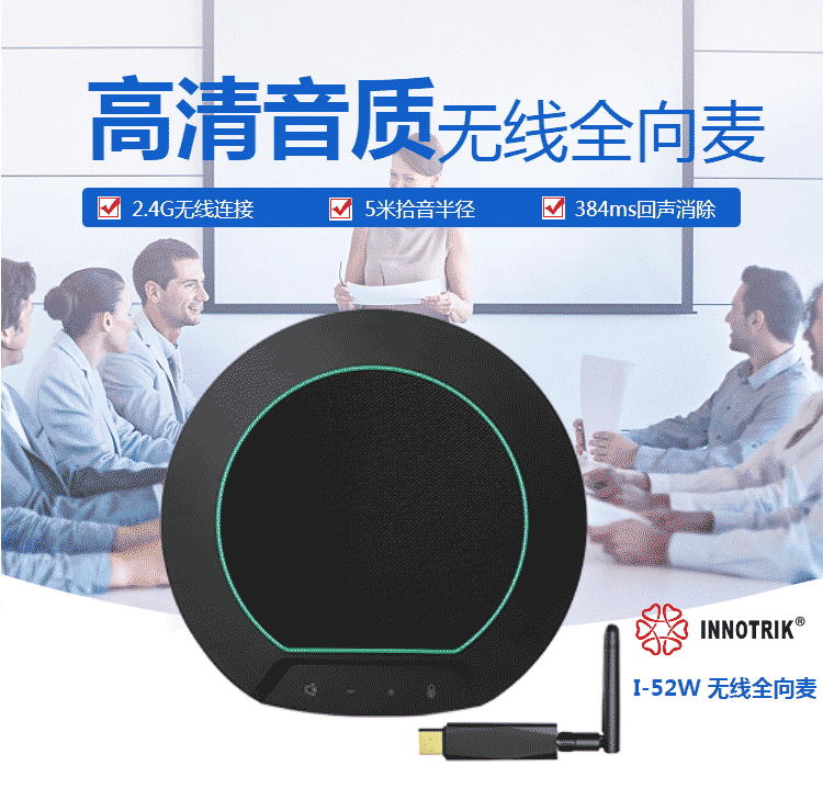 音络(INNOTRIK)2.4G无线全向麦克风 视频会议麦克风 会议拾音器 5-10米拾音半径 I-53W 无线级联全向麦 10米拾音半径
