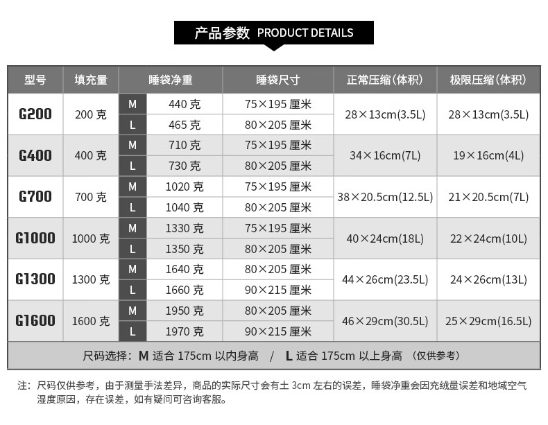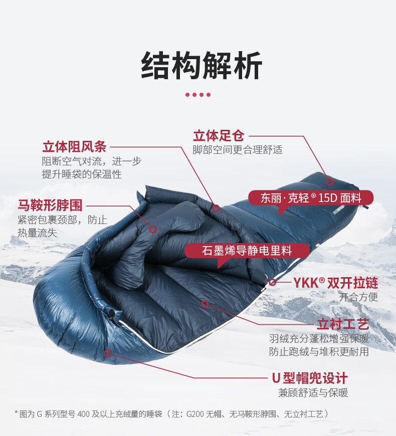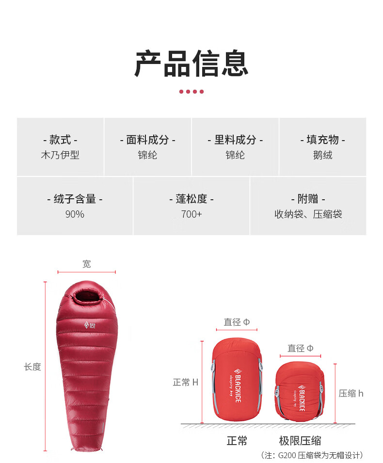 黑冰羽绒睡袋户外G400|G700|G1000|G1300鹅绒露营超轻睡袋可拼接情侣 新标准红色G200-联系客服优惠 M-174身高以下